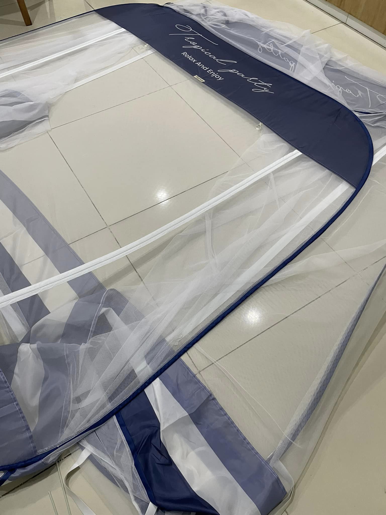 Kiểu dáng: Đỉnh rộng, có 2 cửa ra vào, có viền chân là từ vải nylon thay vì lưới mùng ( giúp bảo vệ 100% khi để tay chân chạm sát mùng)