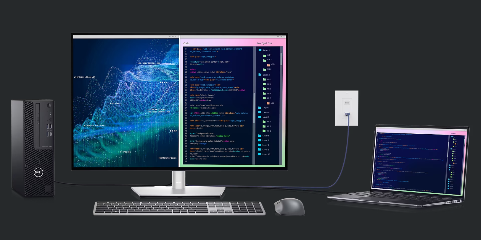 Màn hình Dell P2722HE 27Inch USB-C/RJ45 có kiểu dáng hiện đại, gọn gàng Được DELL thiết kế rất thông minh, màn hình Dell P2722HE 27Inch USB-C/RJ45 IPS có thể giấu dây vào trong để giữ cho không gian làm việc của