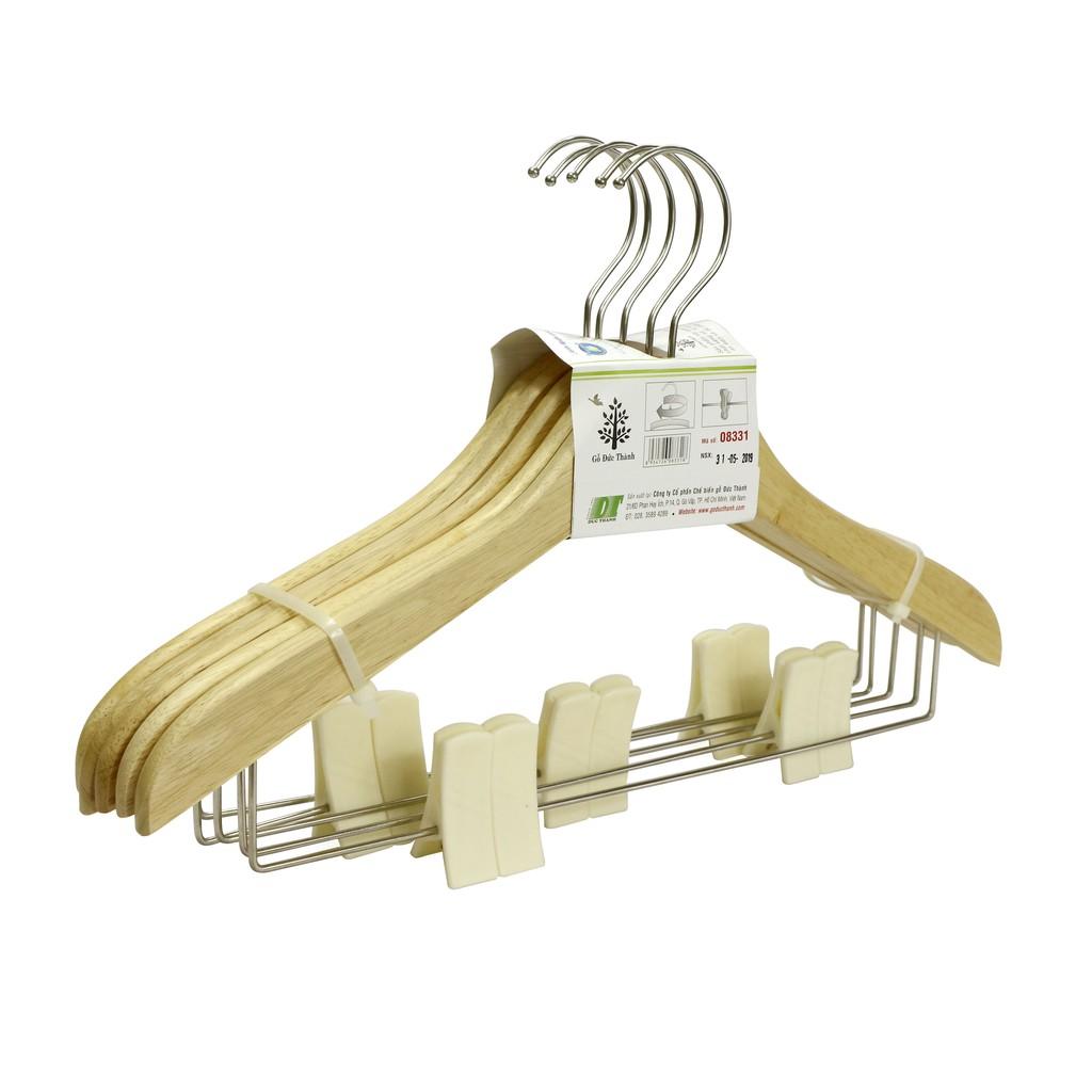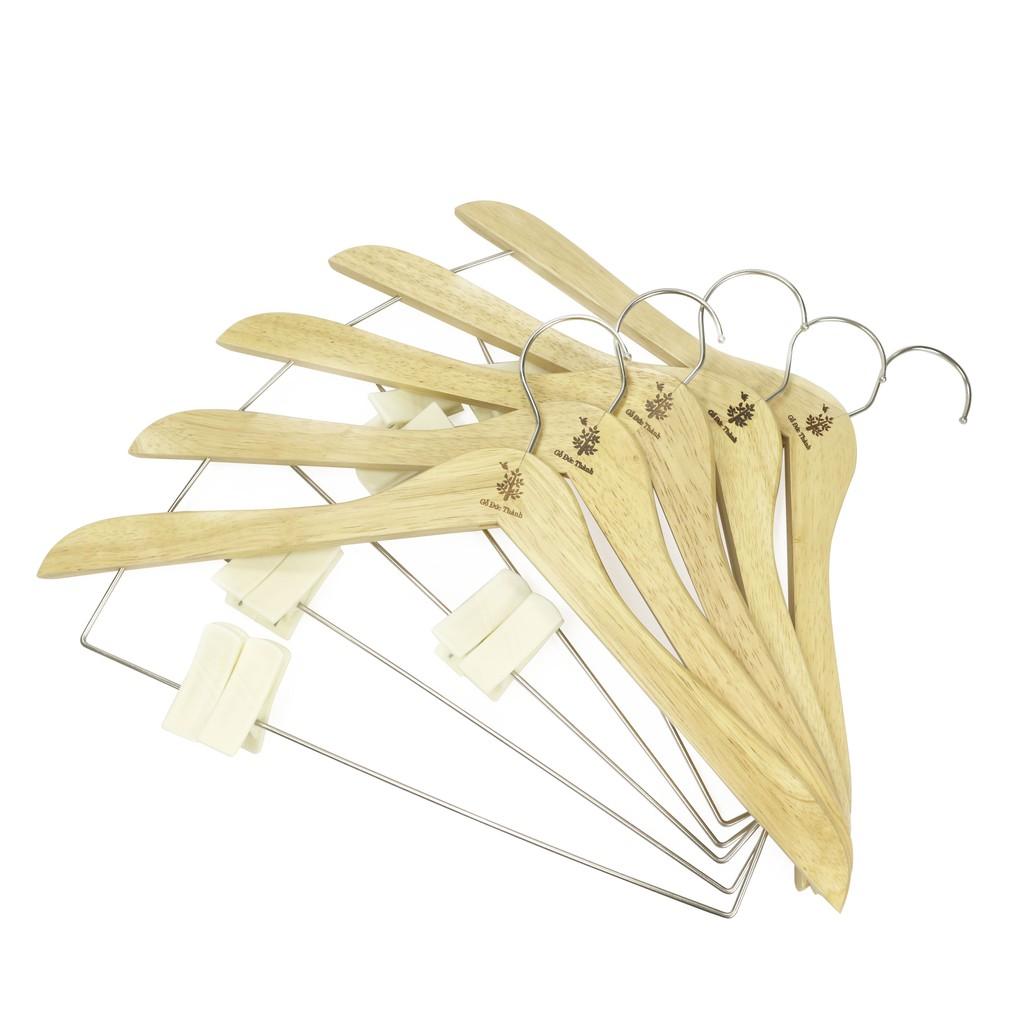 ✨Máng áo có thanh Inox, 2 kẹp nhựa (bộ 5 cái) | Gỗ Đức Thành - 08331
