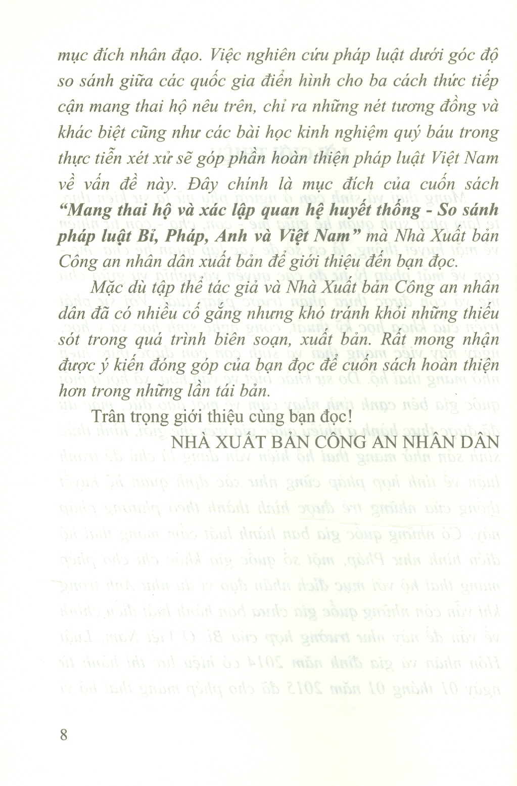 ✨Mang Thai Hộ Và Xác Lập Quan Hệ Huyết Thống So Sánh Pháp Luật Bỉ, Pháp, Anh Và Việt Nam (Sách chuyên khảo)