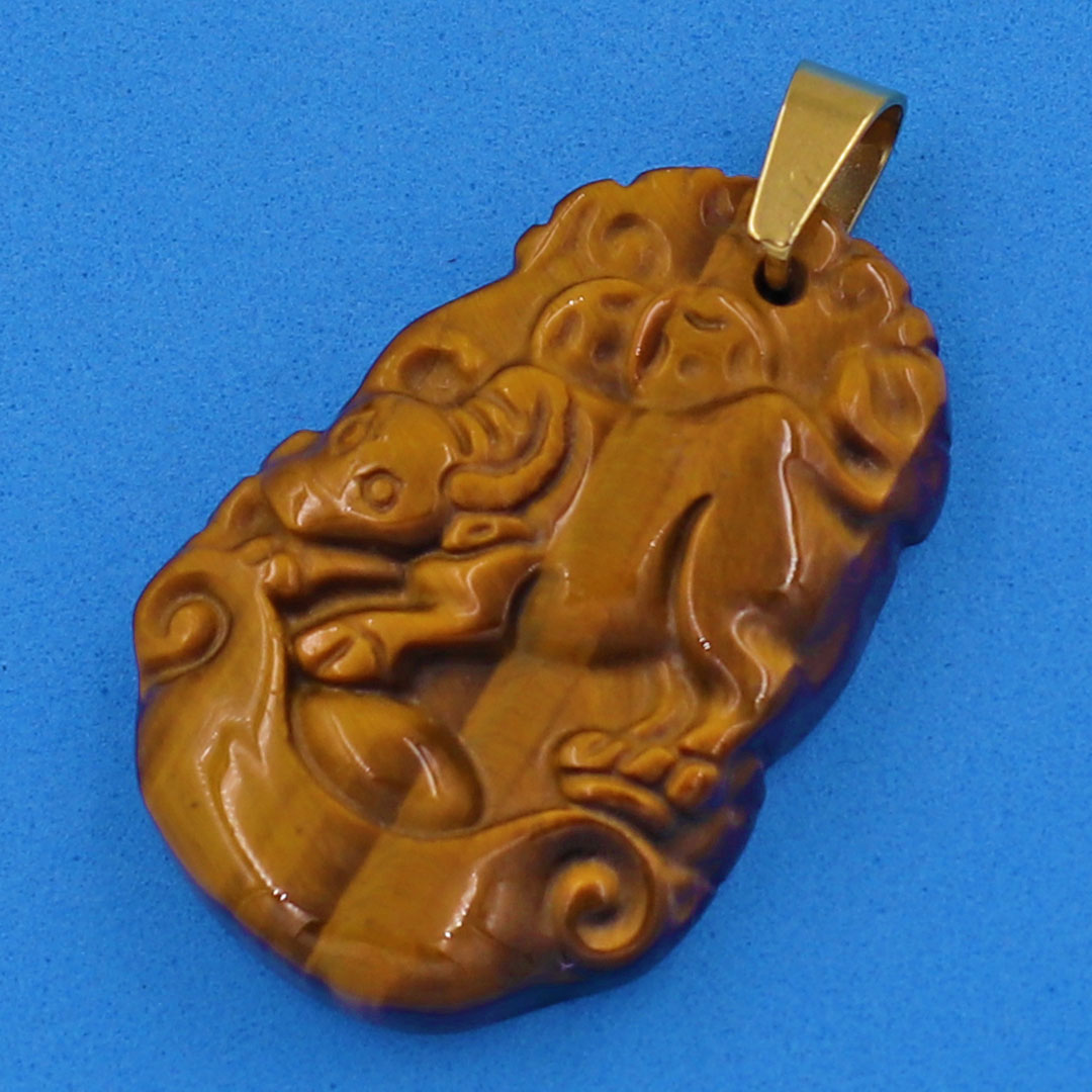 ✨Mặt dây chuyền tuổi Sửu đá mắt hổ 3.6cm - Mặt size nhỏ - linh vật tuổi Sửu