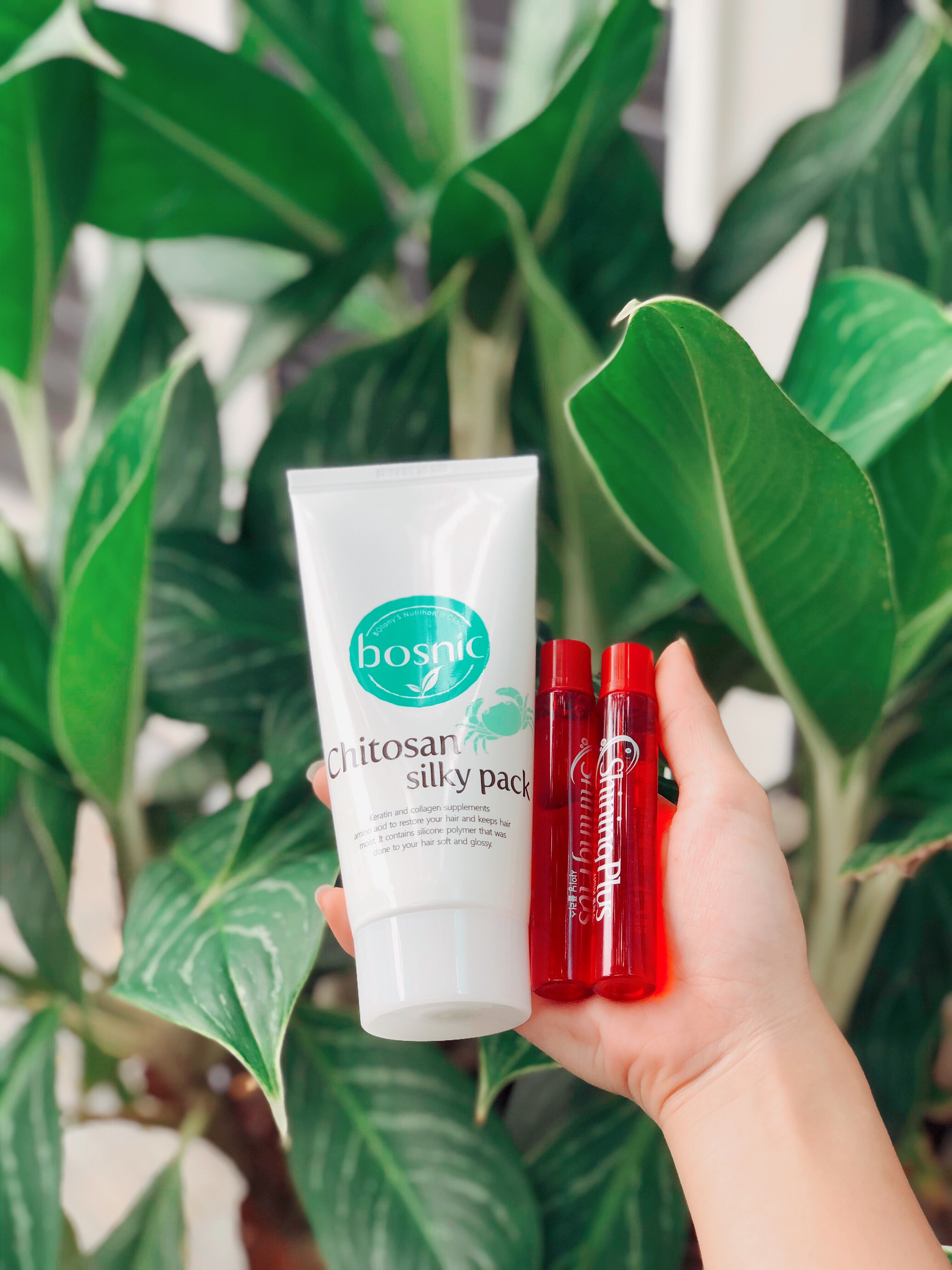 - Tránh ánh nắng trực tiếp. Huyết thanh Shining Plus Ampoule 13ml và Mặt Nạ Ủ Tóc Chitosan Silky Pack 100ml Huyết thanh Shining Plus Ampoule được xem như sản phẩm hỗ trợ đắc lực khi kết hợp với các loại kem ủ, hấp dầu, mặt nạ tóc, và cả những sản phẩm làm tóc như thuốc uốn, duỗi, nhuộm,v.v. Sự kết hợp giữa Huyết Thanh Shining Plus Ampoule và Mặt Nạ Ủ Tóc Chitosan Silky Pack sẽ tăng cường khả năng phục hồi và đẩy nhanh thời gian phục hồi tóc một cách hiệu quả nhất. Đây là combo sản phẩm chuyên về dưỡng tóc mà Bosnic khuyên dùng .