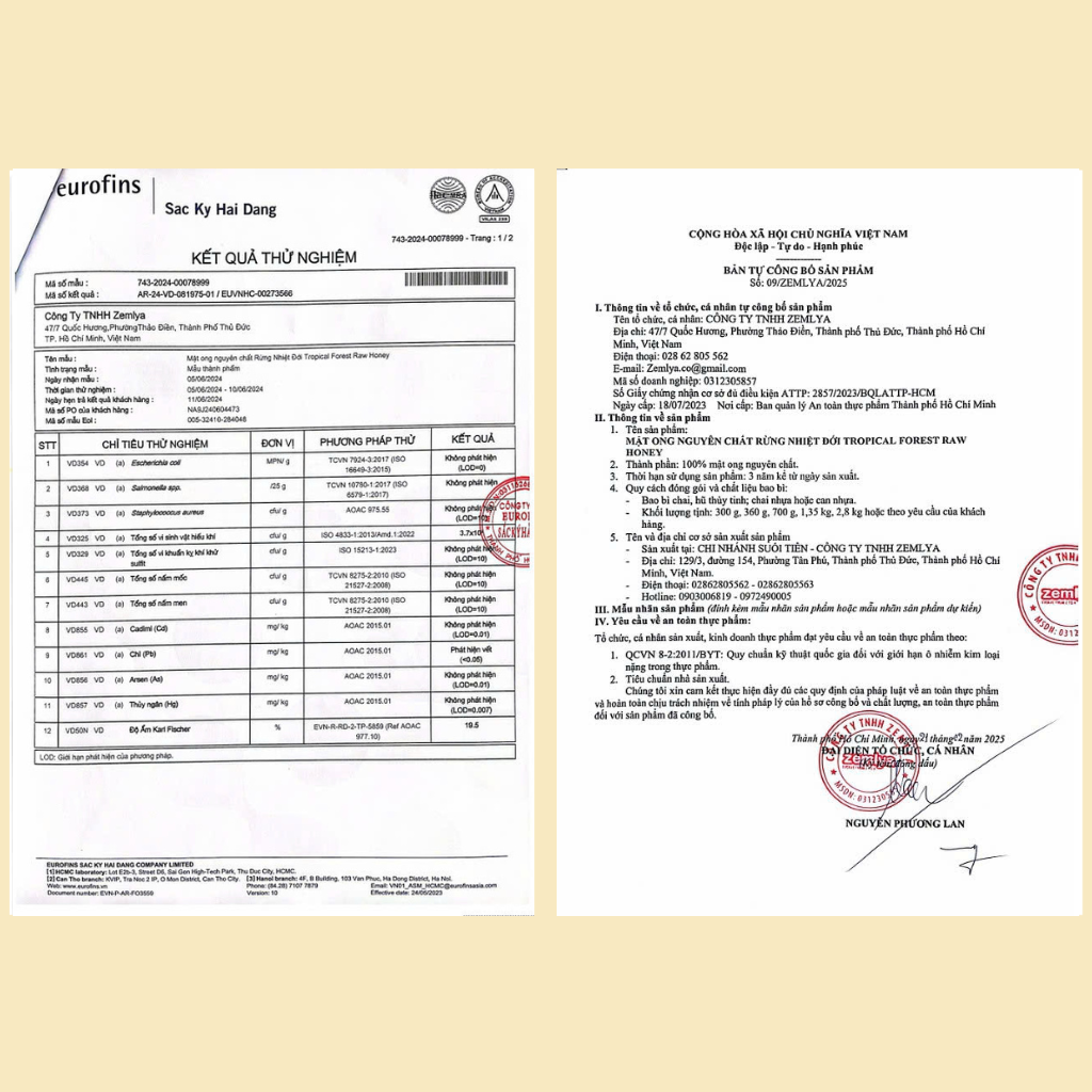 • Số kiểm nghiệm: 230109033 được cấp bởi Trung tâm phân tích Công nghệ cao Hoàn Vũ