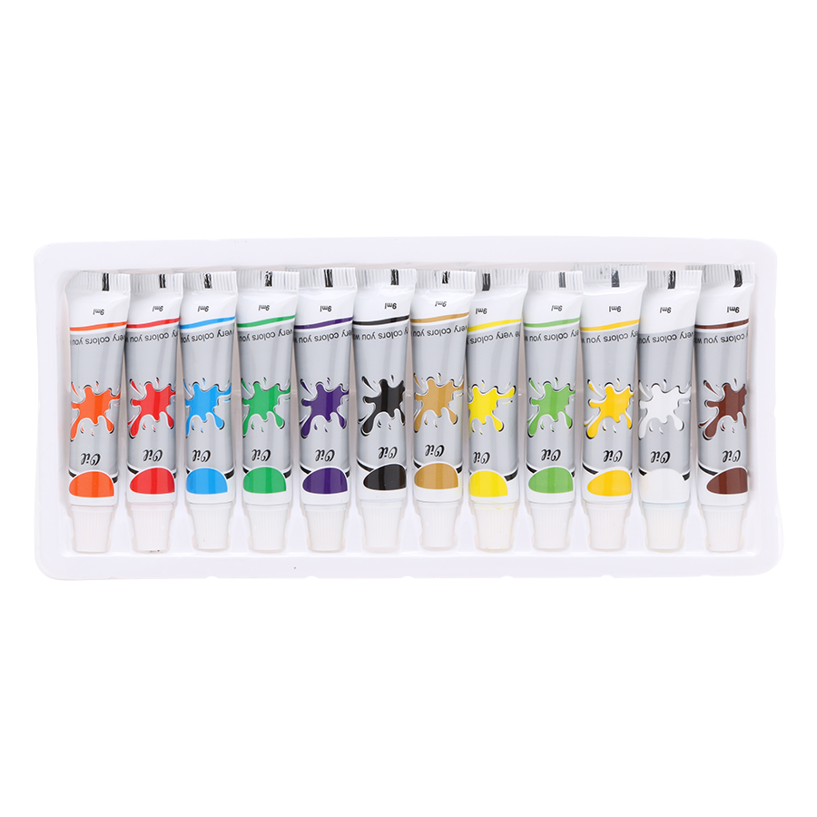 Bộ 12 Màu Acrylic Chuyên Nghiệp 20 ml Kèm Cọ Vẽ - Stacom AC2012A - Sản phẩm bao gồm 12 hộp màu nước Acrylic 20 ml và 1 cọ vẽ tiện dụng. - Độ phủ