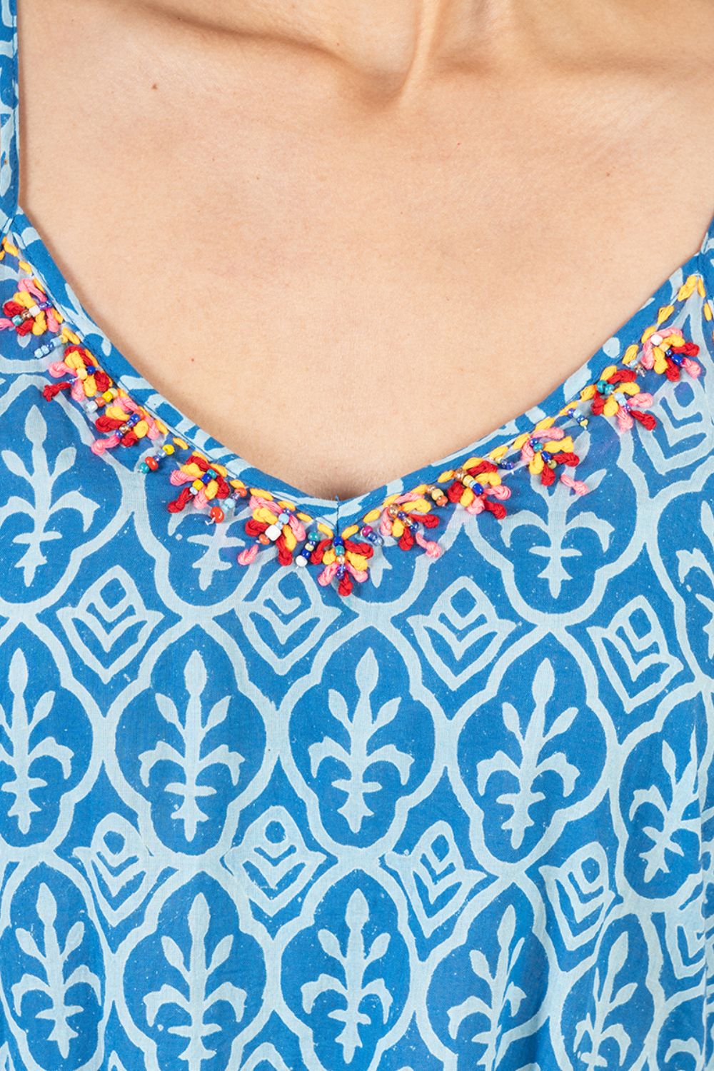 Maxi Hoa Kết Cườm Cotton Isla Bonita, chất liệu cotton mềm mại, hoa trang nhã. Nổi bật phần ngực kết cườm tinh tế. Phom suông. Dài đầm 125cm (45x125) Phù hợp đi biển, dạo phố,