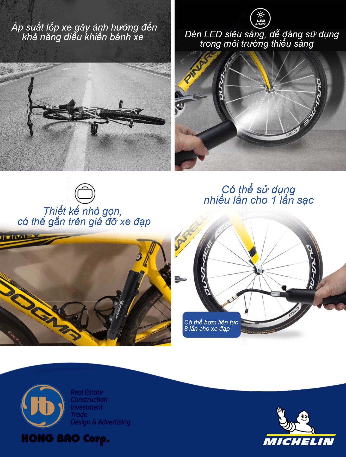 Với Máy bơm lốp xe đạp, xe mô tô siêu tốc MICHELIN 12320, thiết kế nhỏ gọn, rất thích hợp với những người yêu thích thể thao, xe đạp địa hình, hoặc đơn giản hơi là người dùng xe máy thường xuyên. Máy bơm lốp xe đạp, xe máy, mô tô siêu tốc MICHELIN 12320 dùng pin Thích hợp cho gia đình và là vật dụng không thể thiếu của các phượt thủ.