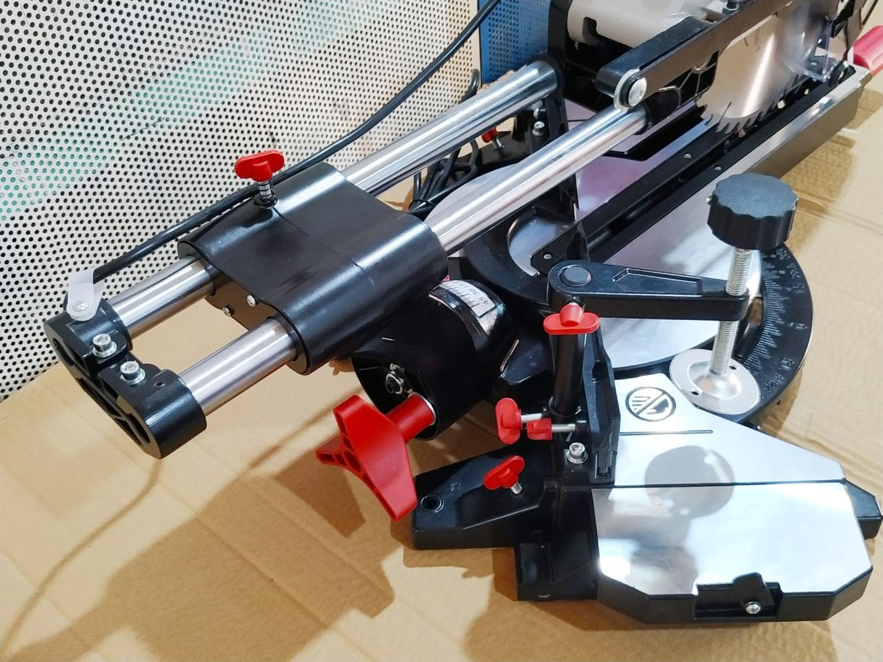 Thanh trượt chuyển động rất nhẹ nhàng. Máy cắt nhôm sử dụng lưỡi cắt đường kính 255mm. Lưỡi cắt có trang bị vành chắn bảo vệ an toàn khi sử dụng và nắp chụp trong suốt để bảo vệ lưỡi cắt khi cần cất giữ.