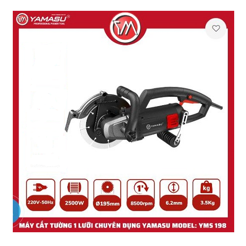 MÁY CẮT TƯỜNG 1 LƯỠI Yamasu YMS-198 được sản xuất từ chất liệu cao cấp, cho độ bền tốt cùng khả năng chịu được nhiệt độ tối ưu, hỗ trợ khả năng làm việc với hiệu suất ổn định trong thời gian lâu dài, đảm bảo độ an toàn cùng chất lượng xuyên suốt quá trình hoạt động. Cùng với vỏ ngoài được làm từ nhựa tổng hợp, cho khả năng bền bỉ, không gây biến dạng khi chịu đựng va đập, Thiết kế tay cầm có độ nhám nhất định, tạo độ ma sát cho người dùng khi cầm, tăng khả năng an toàn khi sử dụng có nhiều tính năng tối ưu giúp gia tăng tuổi thọ của sản phẩm, giúp máy không bị hư hỏng như các loại máy thông dụng trên thị trương hiện nay. Cần kiểm tra sản phẩm kỹ lưỡng trươc khi sử dụng, sau khi dùng, cần lau chùi vệ sinh sản phẩm, cất giữ và bảo quản sản phẩm tránh các trường hợp hư hỏng ngoài ý muốn.