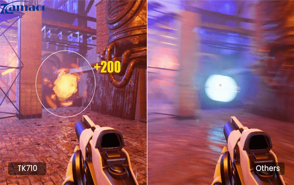 Với 8.3 triệu điểm ảnh riêng biệt cùng công nghệ HDR10 mang đến hình ảnh 4K UHD sắc nét, chi tiết đến từng pixel. Từng chuyển động đều mượt mà, không bị giật lag, giúp bạn có những trải nghiệm chơi game tuyệt vời nhất. TK710 là lựa chọn hoàn hảo cho các game thủ đam mê.