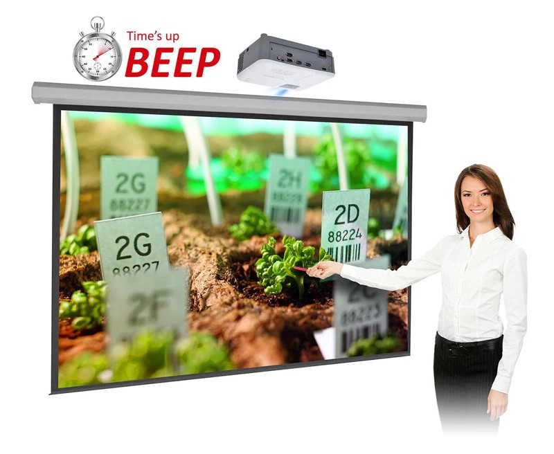 Bộ đếm giờ thuyết trình là một tính năng được tích hợp trực tiếp trên màn hình, giúp bạn dễ dàng theo dõi thời gian trong quá trình thuyết trình. Khi thời gian đạt đến giới hạn đã định trước, máy chiếu sẽ phát ra một âm báo để bạn biết và đảm bảo rằng thuyết trình diễn ra đúng hẹn.