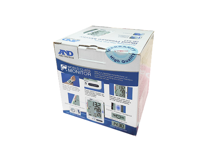 Ứng dụng kỹ thuật công nghệ Nhật Bản, đo dao động huyết áp cổ tay cho kết quả nhanh chóng và chính xác trong vài giây Đây sẽ là bạn đồng hành sức khỏe gia đình bạn trong mọi lúc mọi nơi. Máy được thiết kế màn hình LCD rộng và siêu mỏng với ánh sáng Led hài hòa ở mọi góc nhìn tối ưu về ánh sáng, hiển thị kết quả đo rõ nét giúp người già và những người có thị lực kém cũng đọc được kết quả chính xác. Sản phẩm AND UB-543 là máy đo huyết áp cổ tay, một thiết kế thời trang nhỏ gọn và dễ dàng sử dụng. Bạn chỉ việc ấn nút một lần, máy sẽ đo huyết áp, nhịp tim của bạn và hiển thị trên màn hình một cách nhanh chóng, sản phẩm rất lý tưởng cho những người cần theo dõi huyết áp thường xuyên. Kích thước nhỏ gọn, hệ thống bơm xả tự động, an toàn, tiện lợi sử dụng ở nhà hay mang theo đến nơi làm việc và khi đi du lịch. Máy đo huyết áp AND UB-543 ứng dụng kỹ thuật công nghệ Nhật Bản, đo dao động huyết áp cổ tay cho kết quả nhanh chóng và chính xác trong vài giây. Máy còn có thể phát hiện những bất thường về nhịp tim và cảnh báo rối loạn cho người sử dụng, giúp bạn an tâm về sức khỏe và tránh được những biến chứng bất ngờ cho những người có vấn đề về tim mạch. Sản phẩm hiển thị đầy đủ kết quả đo huyết áp tâm thu, tâm trương, nhịp tim, lịch và đồng hồ giúp bạn ghi nhớ thời gian đo để dễ dàng hỗ trợ cho những lần đo tiếp theo. Máy được trang bị bộ nhớ lưu trữ lên đến 60 lần cho mỗi người dùng (tối đa 2 người), và đọc kết quả trung bình của tất cả các lần đo Sản phẩm đi kèm: hộp đựng, bảng hướng dẫn sử dụng và Pin AAA. Thông số kỹ thuật