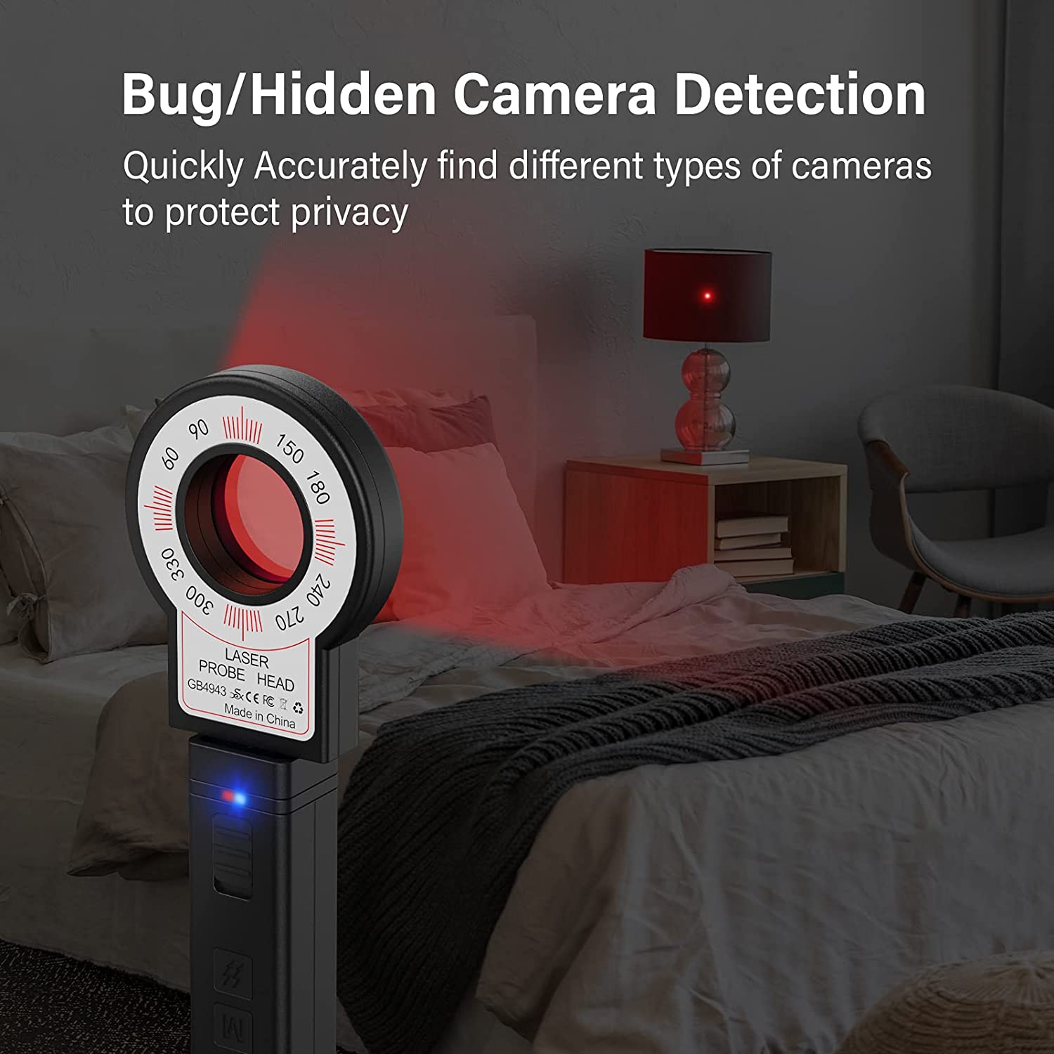 Phát hiện tia hồng ngoại, có thể phát hiện camera Cảm biến rung động nhạy bén, một khi rung động sẽ ngay lập tức phát ra âm thanh báo động mạnh mẽ Chip cảm biến