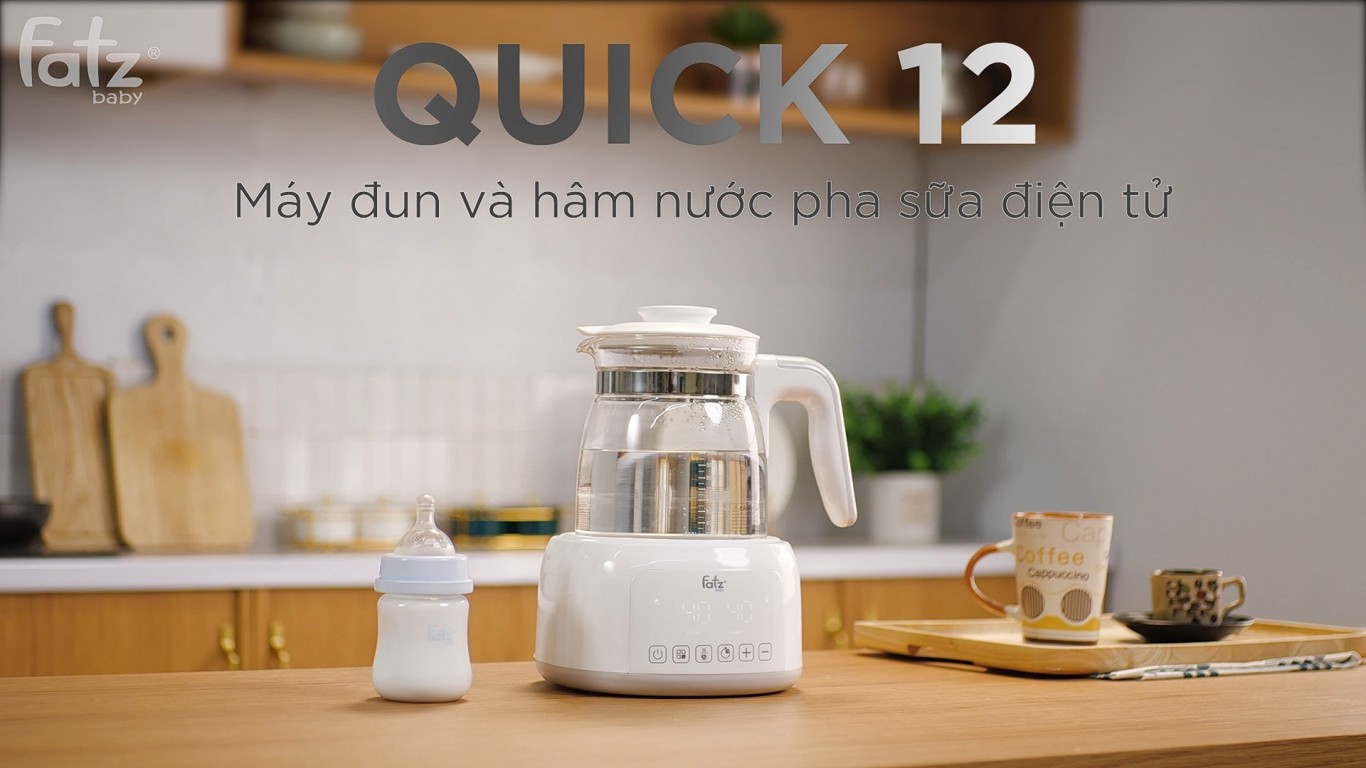 Quick 12 là một trong những sản phẩm giá rẻ thuộc dòng máy đun và hâm nước pha sữa điện tử của Fatzbaby. Sở hữu những chức năng cơ bản như đun nước, khử clo và giữ ấm nước, Quick 12 đáp ứng những nhu cầu cơ bản của mẹ đối với một chiếc máy đun và hâm nước pha sữa cho bé. Thiết kế mới nổi bật là bình thủy tinh dung tích lớn, cùng với tính năng hẹn giờ rất tiện lợi cho mẹ trong quá trình sử dụng.