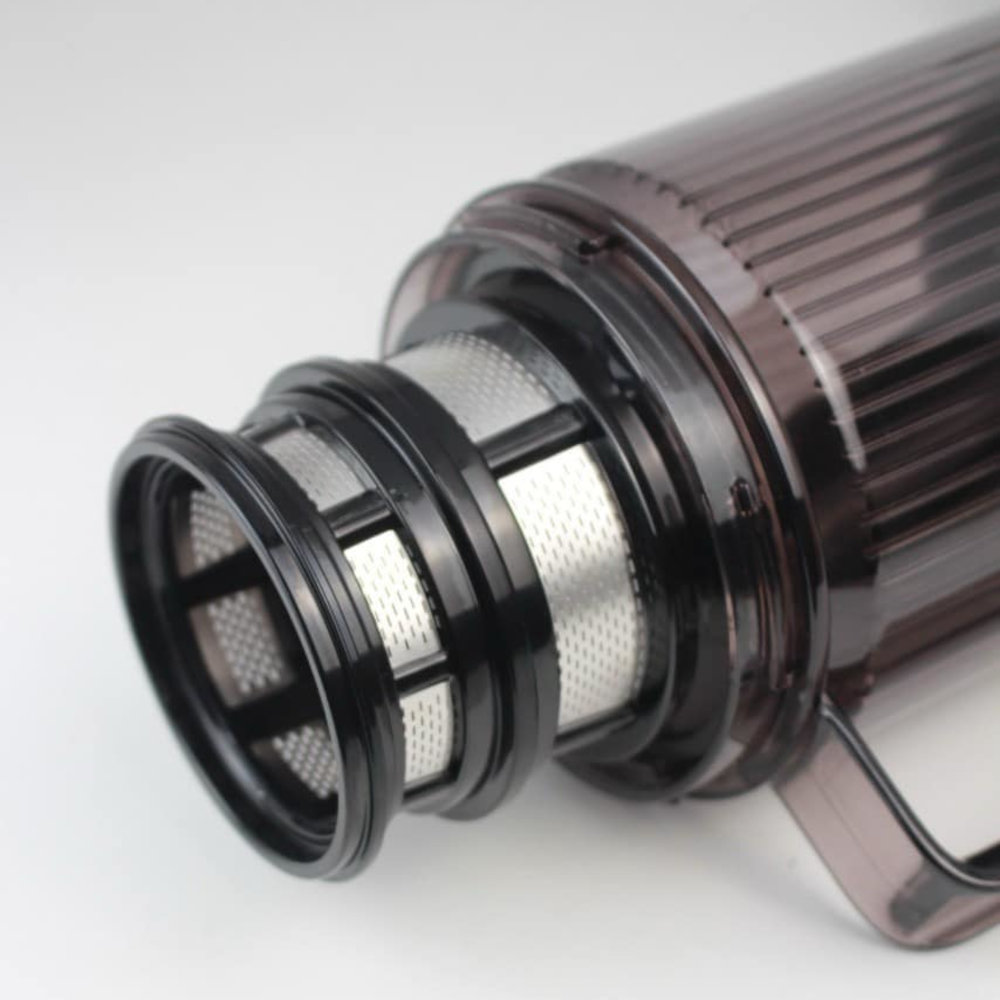 Lưới lọc được làm từ inox 304 cao cấp. Các chi tiết làm bằng chất liệu nhựa là nhựa nguyên sinh cao cấp không chỉ an toàn cho sức khỏe khi sử dụng mà còn tạo nên nét đẹp của một thiết bị điện cao cấp trong những không gian bếp hiện đại.