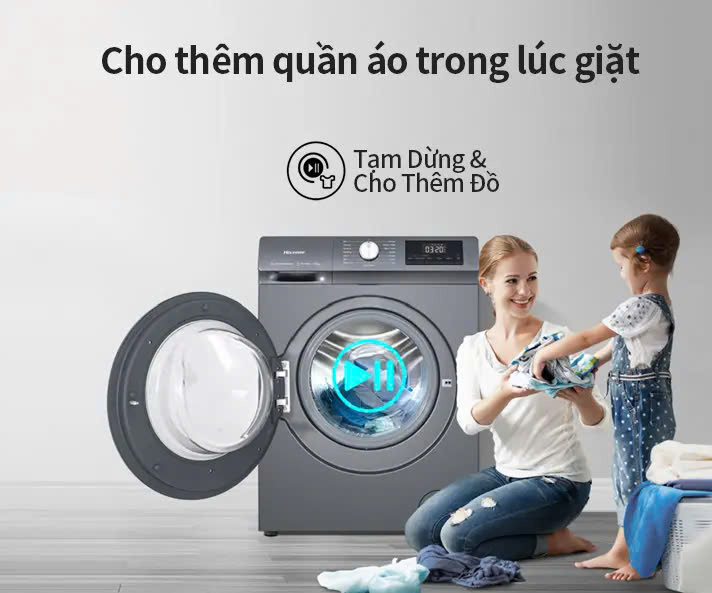 - Chức năng Tạm Dừng Và Cho Thêm Đồ Giặt tiện lợi cho phép bạn chỉ cần tạm dừng quá trình giặt và nhanh chóng thêm quần áo vào mẻ giặt hoặc loại bỏ những đồ không mong muốn.