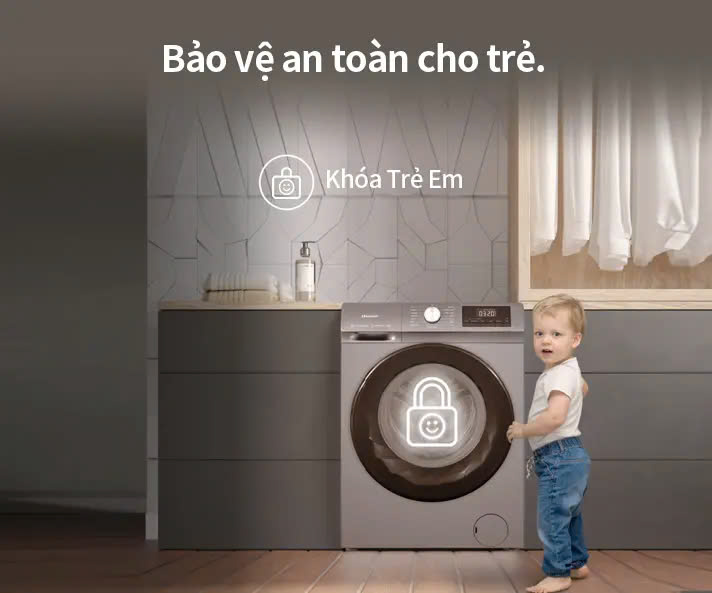 - Chức năng Khóa trẻ em, trẻ nhỏ sẽ không thể thay đổi chương trình giặt của bạn, đảm bảo quần áo luôn sạch sẽ. Quan trọng hơn, chức năng này sẽ bảo vệ sự an toàn cho trẻ khi bắt đầu khám phá thế giới xung quanh.