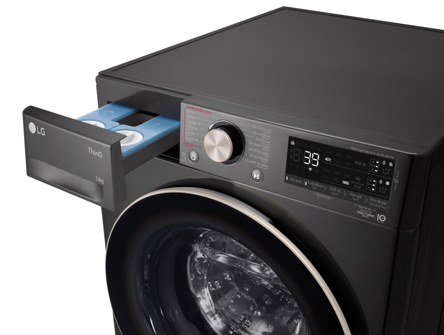 Tổng quan Loại máy giặt: Cửa trước Lồng giặt: Lồng ngang Khối lượng giặt: 14 Kg Số người sử dụng: Trên 7 người (Trên 10 kg) Kiểu động cơ: Truyền động trực tiếp - sử dụng trí tuệ nhân tạo Tốc độ quay vắt tối đa: 1400 vòng/phút Chất liệu lồng giặt: Thép không gỉ Chất liệu vỏ máy: Kim loại sơn tĩnh điện Chất liệu nắp máy: Kính chịu lực Sản xuất tại: Trung Quốc Dòng sản phẩm: 2023 Mức tiêu thụ điện năng Hiệu suất sử dụng điện: 19.39 Wh/kg Loại Inverter: Công nghệ Inverter Chương trình giặt: Chu trình tải về TurboWash 39 Vải bông Vải bông + Giặt + sấy Giặt ngừa dị ứng Giặt nhanh 14 phút Giặt nhẹ Giặt tay + đồ len Làm mới quần áo bằng hơi nước Sấy Vệ sinh lồng giặt Đồ hỗn hợp Đồ tinh xảo Công nghệ giặt: Công nghệ AI DD bảo vệ sợi vải, Công nghệ TurboWash360 Công nghệ sấy: Không có Bảng điều khiển: Song ngữ Anh - Việt có nút xoay, cảm ứng và màn hình hiển thị Thông tin lắp đặt Kích thước, khối lượng: Cao 85 cm - Ngang 60 cm - Sâu 61.5 cm - Nặng 73 kg Hãng: LG.