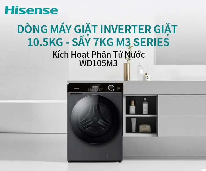✨Máy giặt sấy Hisense Inverter Pro 10.5kg WD105M3 giặt thông minh AI, điều khiển từ xa, bảo hành 3 năm - HÀNG CHÍNH HÃNG