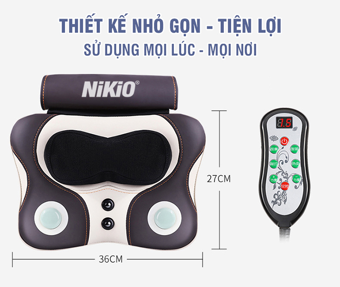Máy (gối) massage xoa bóp cổ vai gáy pin sạc Nikio NK-136DC - Kết hợp đấm bóp lưng thế hệ mới. Sản phẩm giúp mát xa giảm đau nhức mỏi, thư giãn toàn thân cực