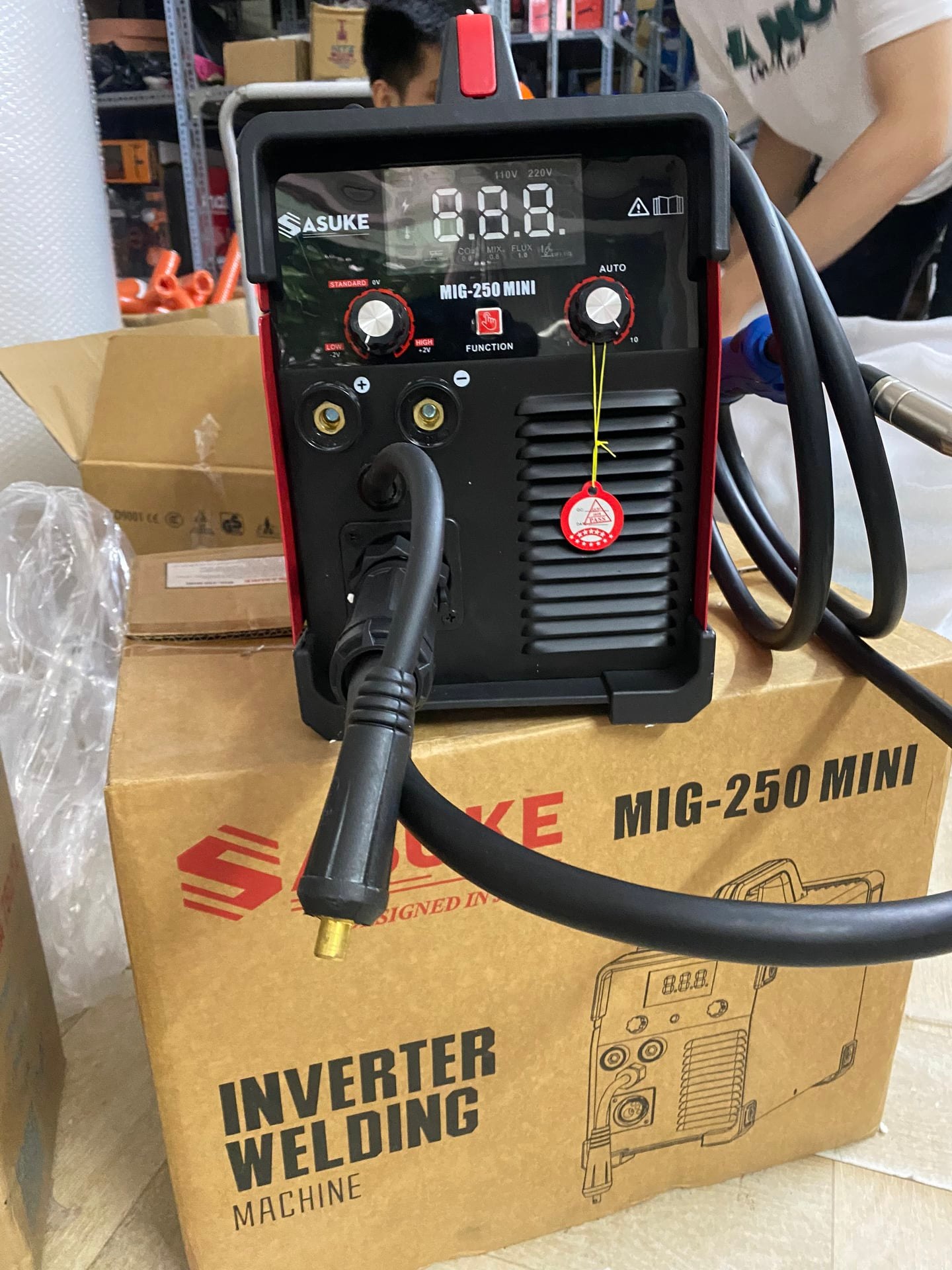 Máy hàn Sasuke Mig 250A sử dụng que hàn đường kính 1.6mm - 4.0mm Máy hàn mig Sasuke 250A là dòng máy hàn điện tử nhỏ gọn với trọng lượng chỉ 11.6kg giúp xách tay di chuyển khi