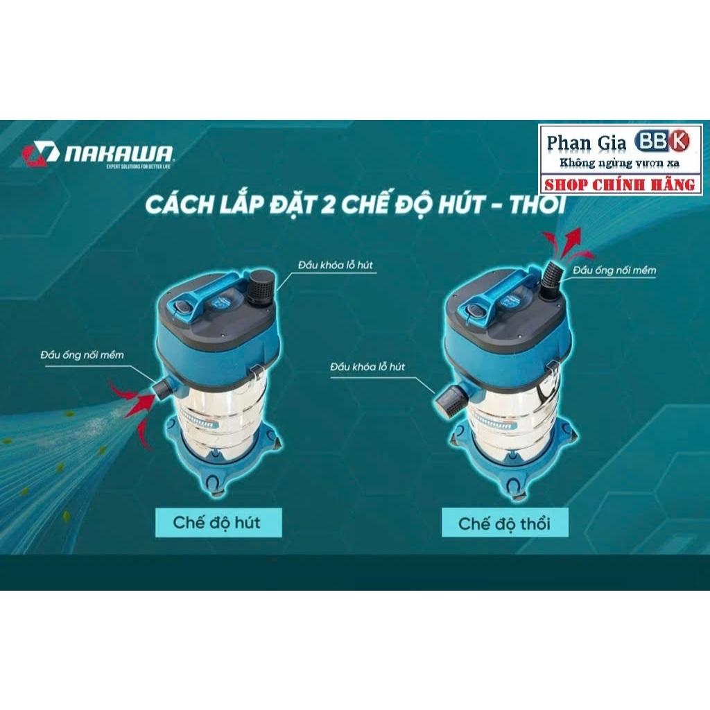 • Máy hút bụi công nghiệp NAKAWA là sản phẩm hút bụi khô và ướt với thiết kế thông minh , có thể hút được ở mọi ngóc ngách như sàn xe , trần xe , ghế ngồi ,... chuyên dùng cho các garage oto cũng như gia đình mà được khách hàng đánh giá cao hiện nay.