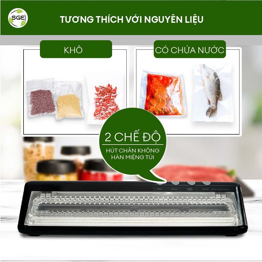 - Máy có thể hút chân không đối với tất cả các loại thực phẩm như thịt, hoa quả, thực phẩm khô, rau củ, ngũ cốc, v.v…