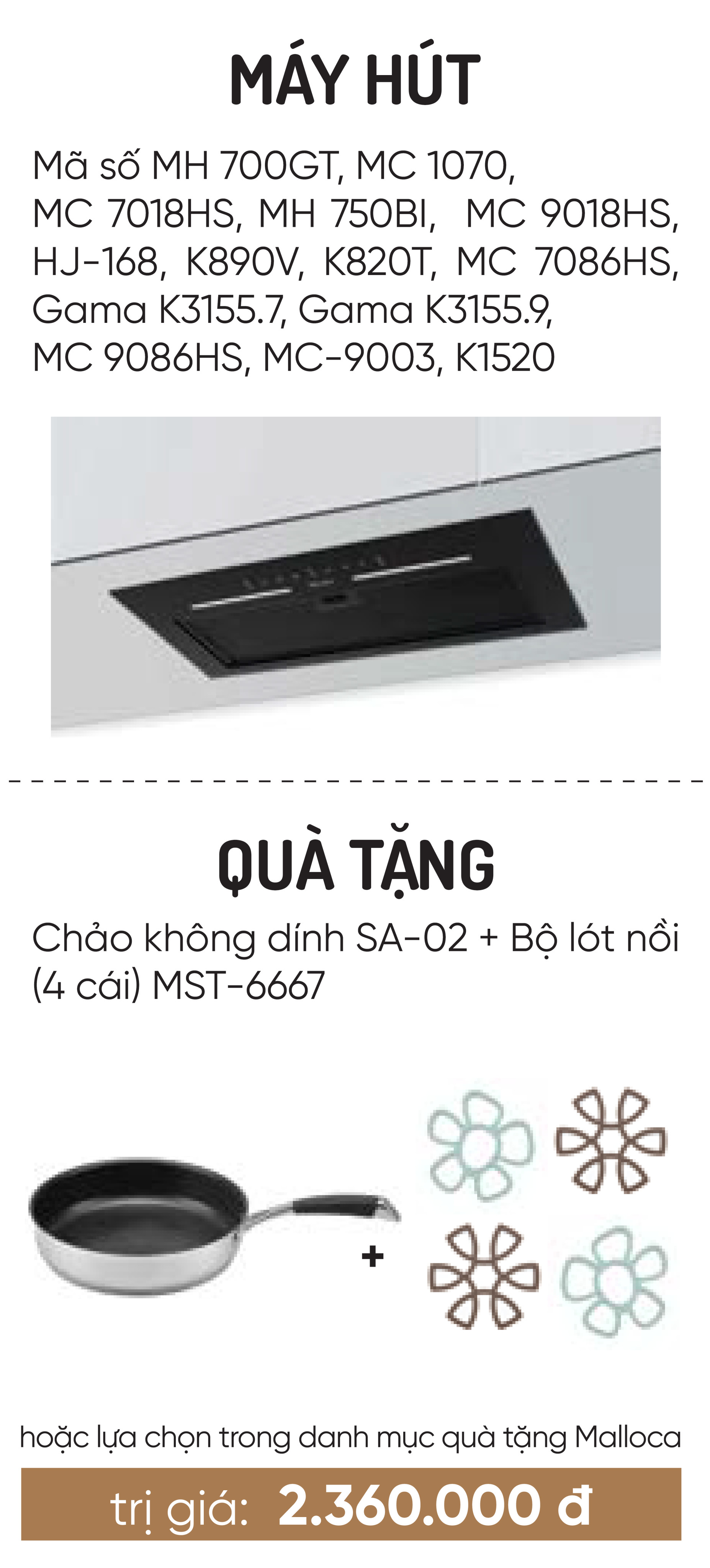 Nếu gia đình bạn đạng sở hữu bếp điện từ có 2-3 vùng nấu và muốn tiết kiệm không gian bếp thì mẫu máy hút mùi âm tủ Malloca K1506, K1507 và K1509 là lựa