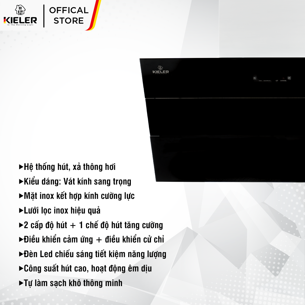 - Tên sản phẩm: Máy hút mùi KIELER KL-SUPER960 công suất hút cao, không gây tiếng ồn, kiểu vát kính sang trọng, điều khiển bằng cử chỉ