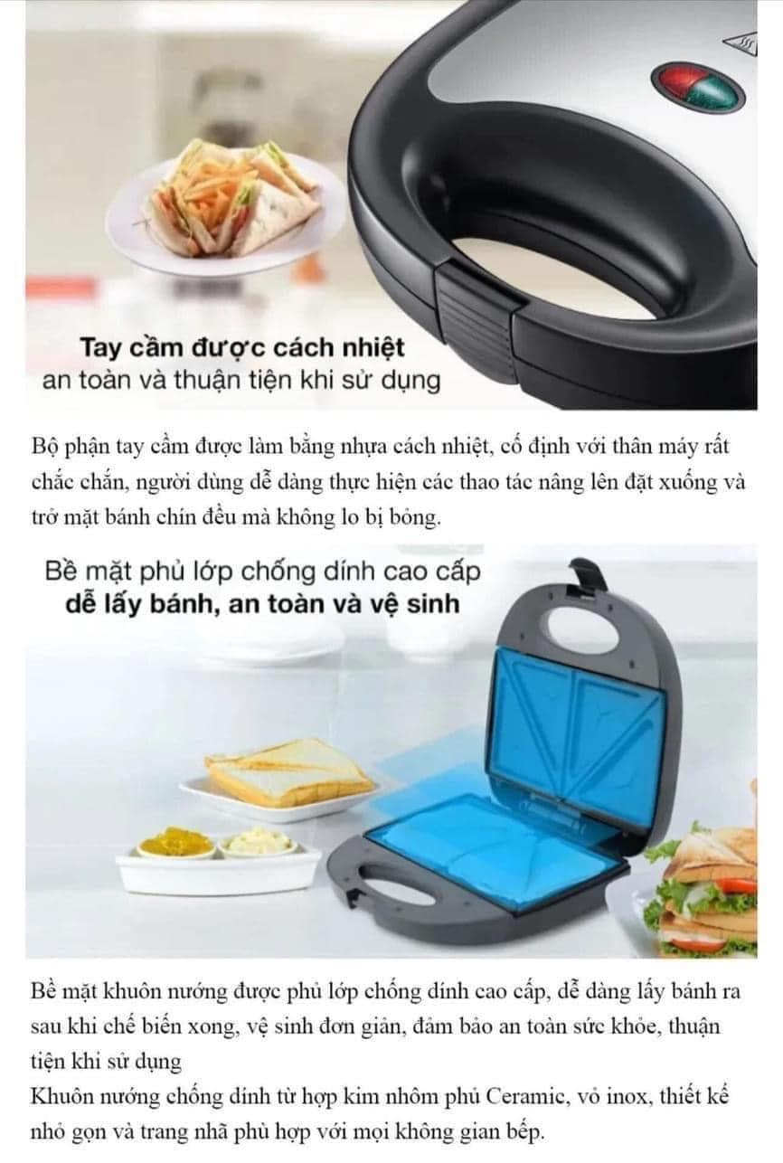 Máy kẹp nướng bánh mì sandwich SK550 Màu Đen nướng nhanh chín đều, chống dính tốt TÍNH NĂNG NỔI BẬT CỦA MÁY NƯỚNG BÁNH MÌ SK550 - Nướng bánh nhanh chóng: Bạn chỉ cần nướng