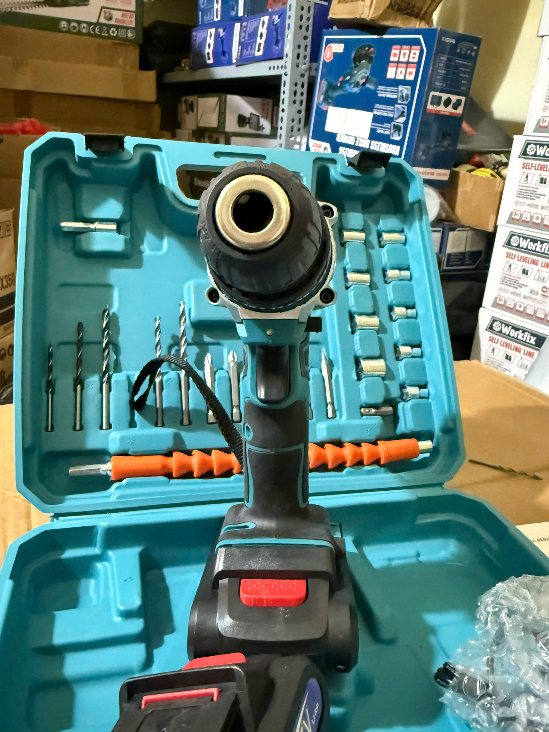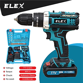 Máy khoan pin 77V Elex 3 chức năng có búa - Tặng kèm 24 chi tiết gồm các mũi khoan + Mũi bắt vít..