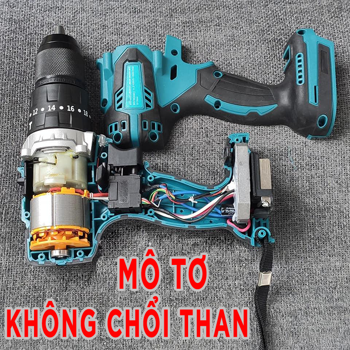 Máy Khoan Pin Hukan 16.8V. Đầu Cặp 10MM - Sử dụng động cơ không chổi than ( Brushless) Giúp máy hoạt động tiết kiệm pin và mạnh mẽ dù máy rất nhỏ gọn - Vỏ