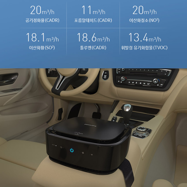 Máy khử mùi, lọc không khí dạng cốc trên xe ô tô cao cấp Philips GP5601 công suất 5,5W tích hợp 5 công nghệ tiên tiến bảo vệ không khí trong xe Philips là tên