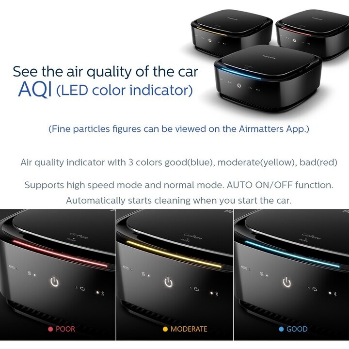 Máy khử mùi, lọc không khí trên xe ô tô Philips GP7101 nâng cấp một số tính năng như: Hiệu suất lọc khí nhanh, cảm biến chất lượng không khí 3 màu AQI, theo dõi chất lượng không khí theo thời gian thự Ưu điểm