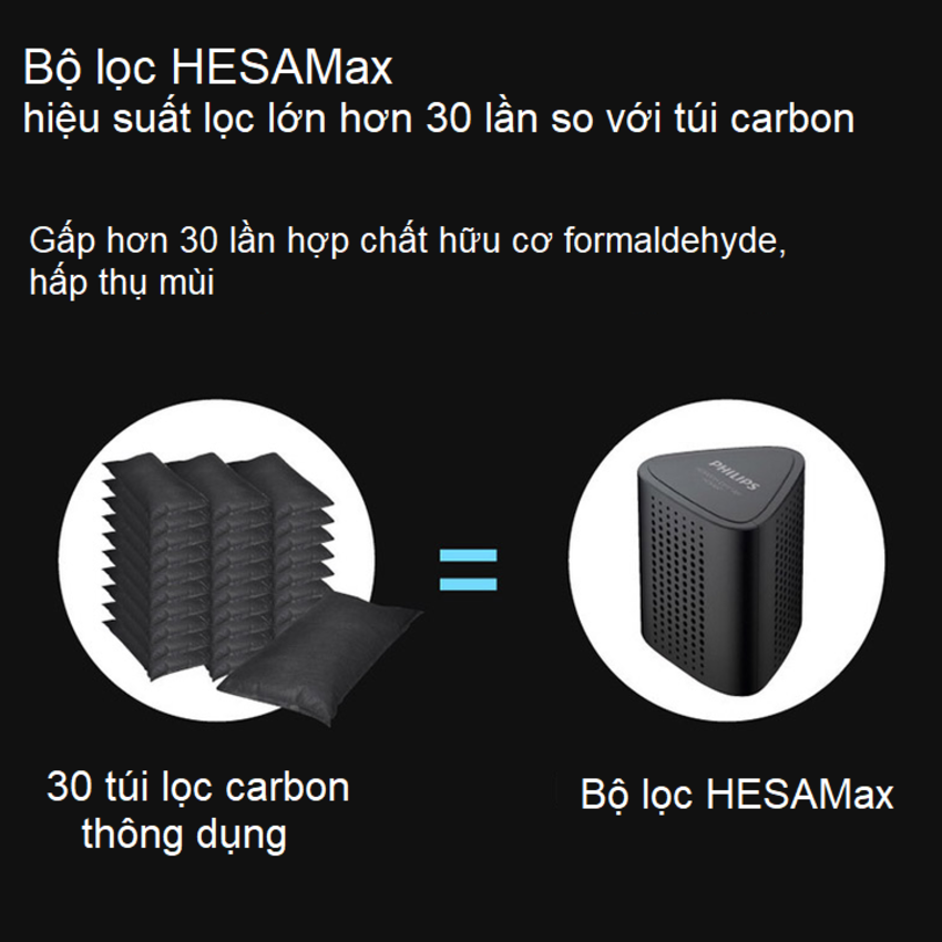 - Bộ lọc HESAMax loại bỏ khí độc hại và mùi hôi, đặc biệt sau khi tắt máy bộ lọc vẫn hoạt động liên tục và tiếp tục loại bỏ khí độc hại trong vòng 24 giờ. Hấp thụ hiệu quả các khí độc hại và mùi hôi, khả năng hấp phụ gấp 30 lần than hoạt tính thông thường.