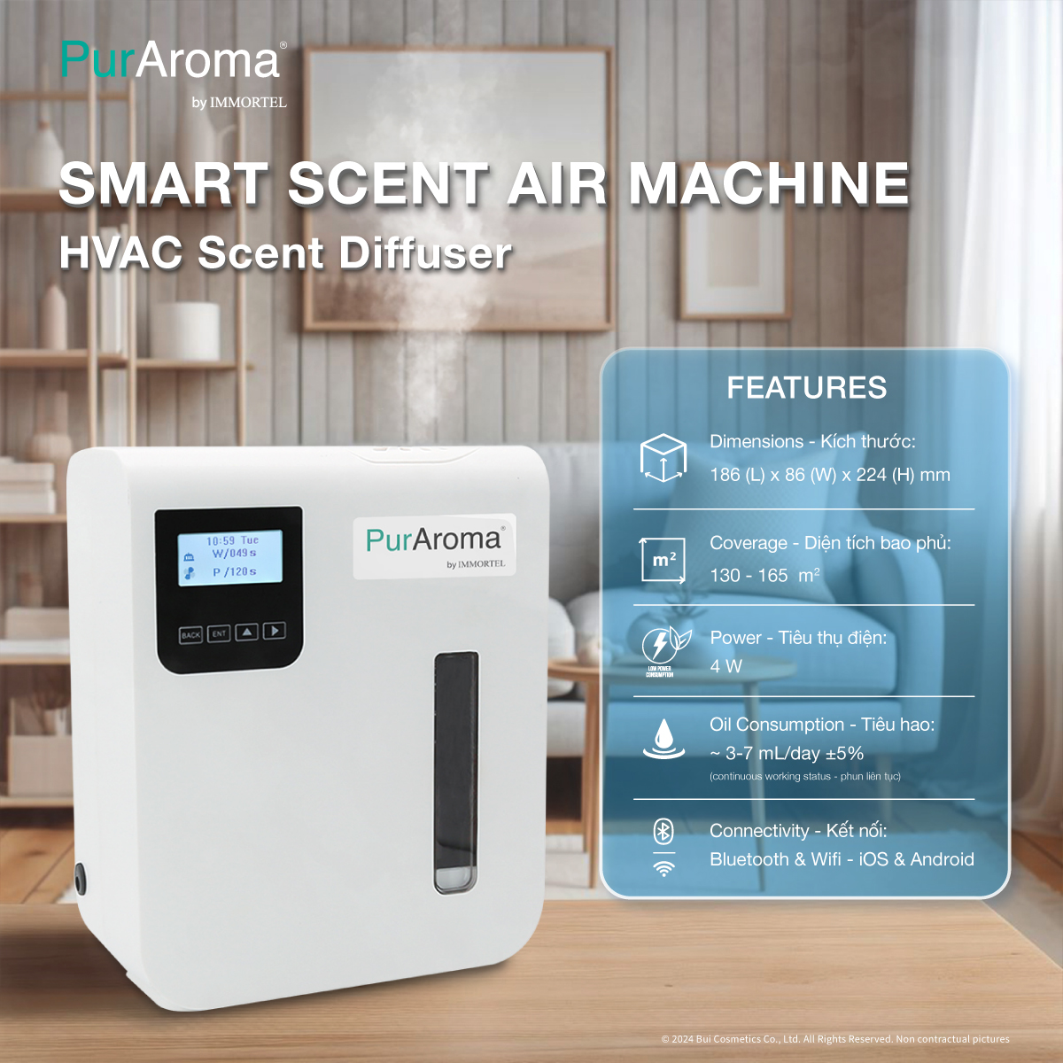 - Sử dụng tinh dầu PurAroma chính hãng từ Pháp, thương hiệu độc quyền từ IMMORTEL, mang lại mùi hương tự nhiên, an toàn và cao cấp.
