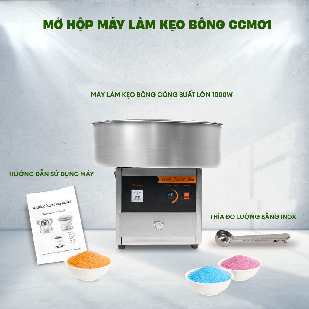 Máy kẹo bông Có thể làm kẹo bông mềm, sản xuất nhanh. Thích hợp để làm kẹo bông để bán bởi vì nó có năng lực sản xuất cao dùng nguyên liệu ít và sử dụng bền lâu. Máy cũng có thể sử dụng cho các event, sự kiện hay tổ chức hoạt động cho trẻ nhỏ do máy sử dụng được lâu dài.