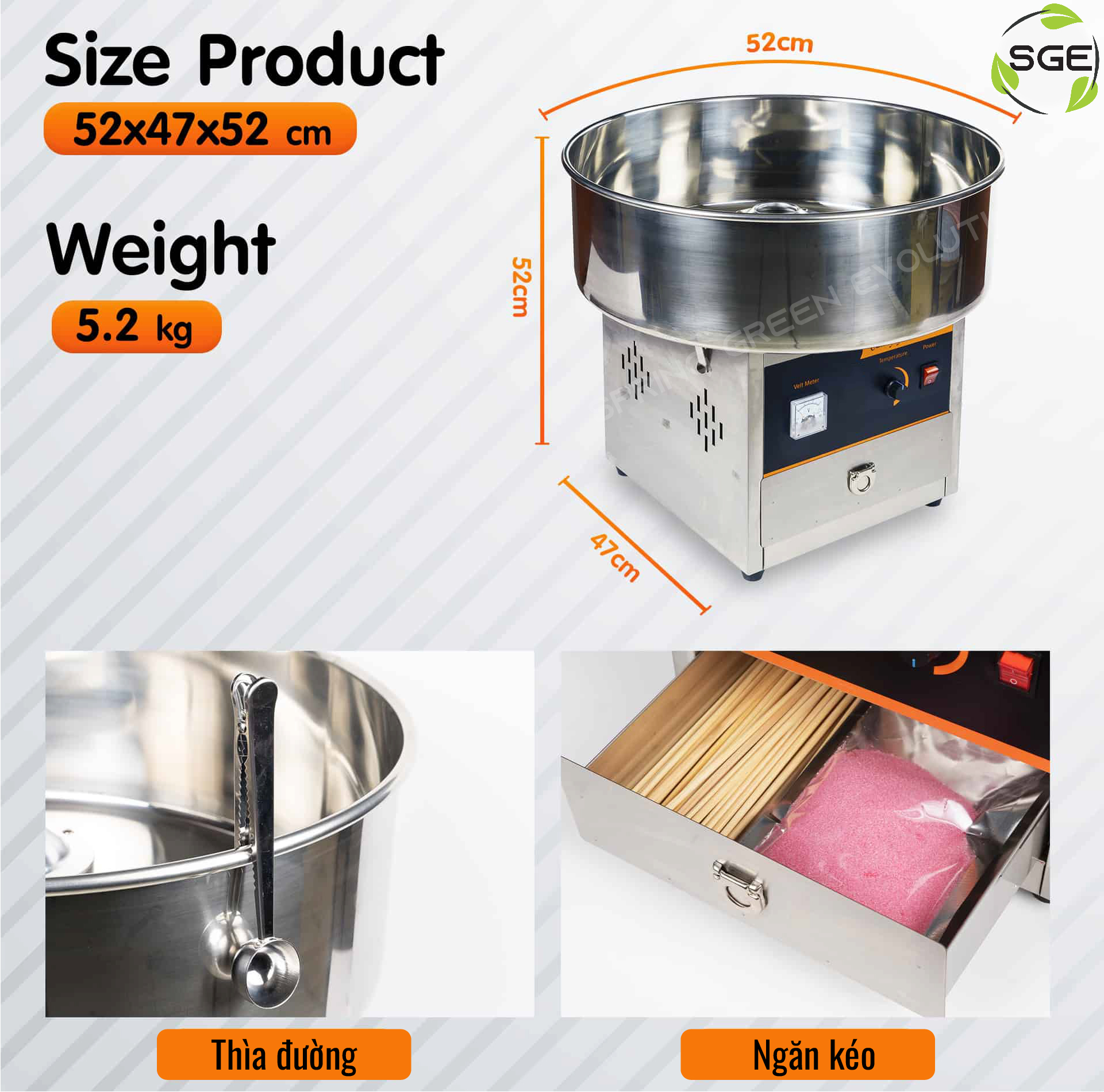 Mô tả sản phẩm Máy làm kẹo bông gòn chiếc máy có thể biến 1 thìa đường hoặc mạch nha thành những que kẹo bông nhiều màu220 sắc Chiếc máy hoạt động rất đơn giản: