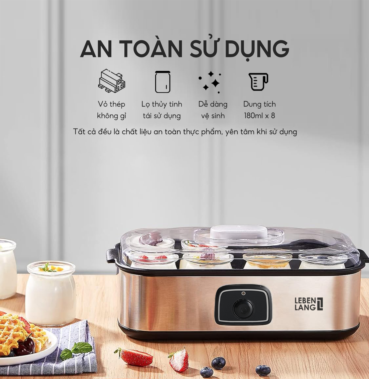Máy làm sữa chua Lebenlang LBL9139, máy ủ sữa chua công suất 20W, dung tích 180ml, gồm 8 lọ thủy tinh, bảo hành 2 năm - hàng chính hãng 6 LÝ DO NÊN CHỌN MÁY LÀM SỮA CHUA CỦA LEBENLANG