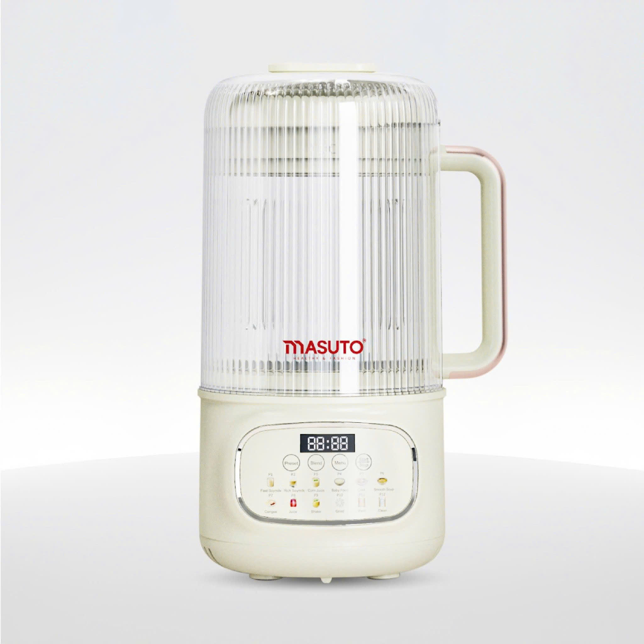 Máy Làm Sữa Hạt Masuto 1,2L Thủy Tinh Chống Ồn Cường Lực Xay Hạt Nhuyễn Mịn Chống Trào 12 Chế Độ Nấu Model: MSLovePlus Tính năng: 12 chế độ thông minh: Sữa hạt, Sữa đậu nành, Sữa ngô,