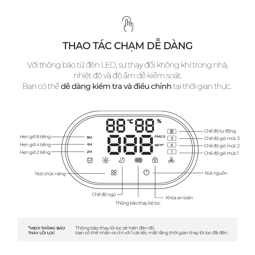 - Hiển thị trạng thái thực của không khí thông qua các màu của đèn LED