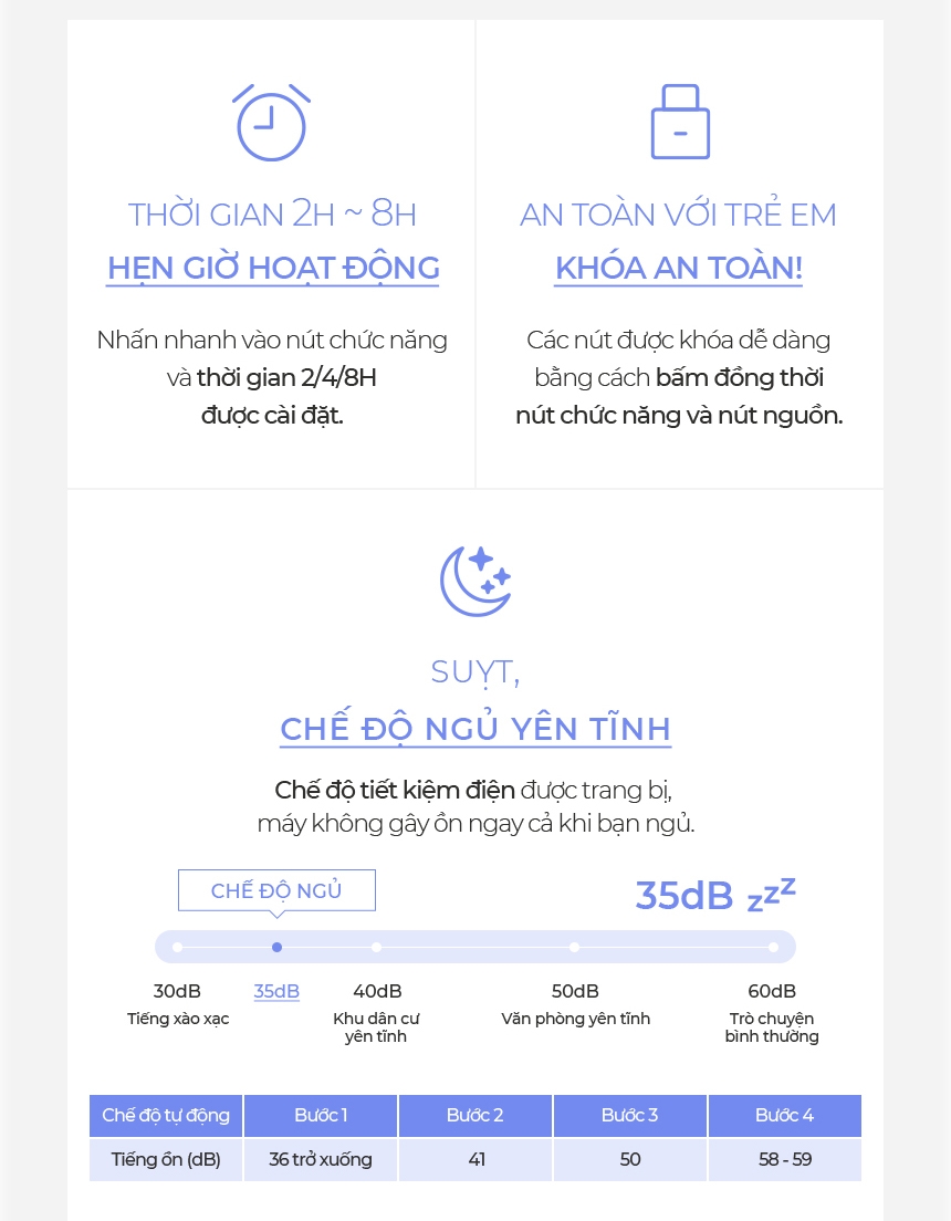 - Kết hợp các chức năng Hẹn giờ và Childlock