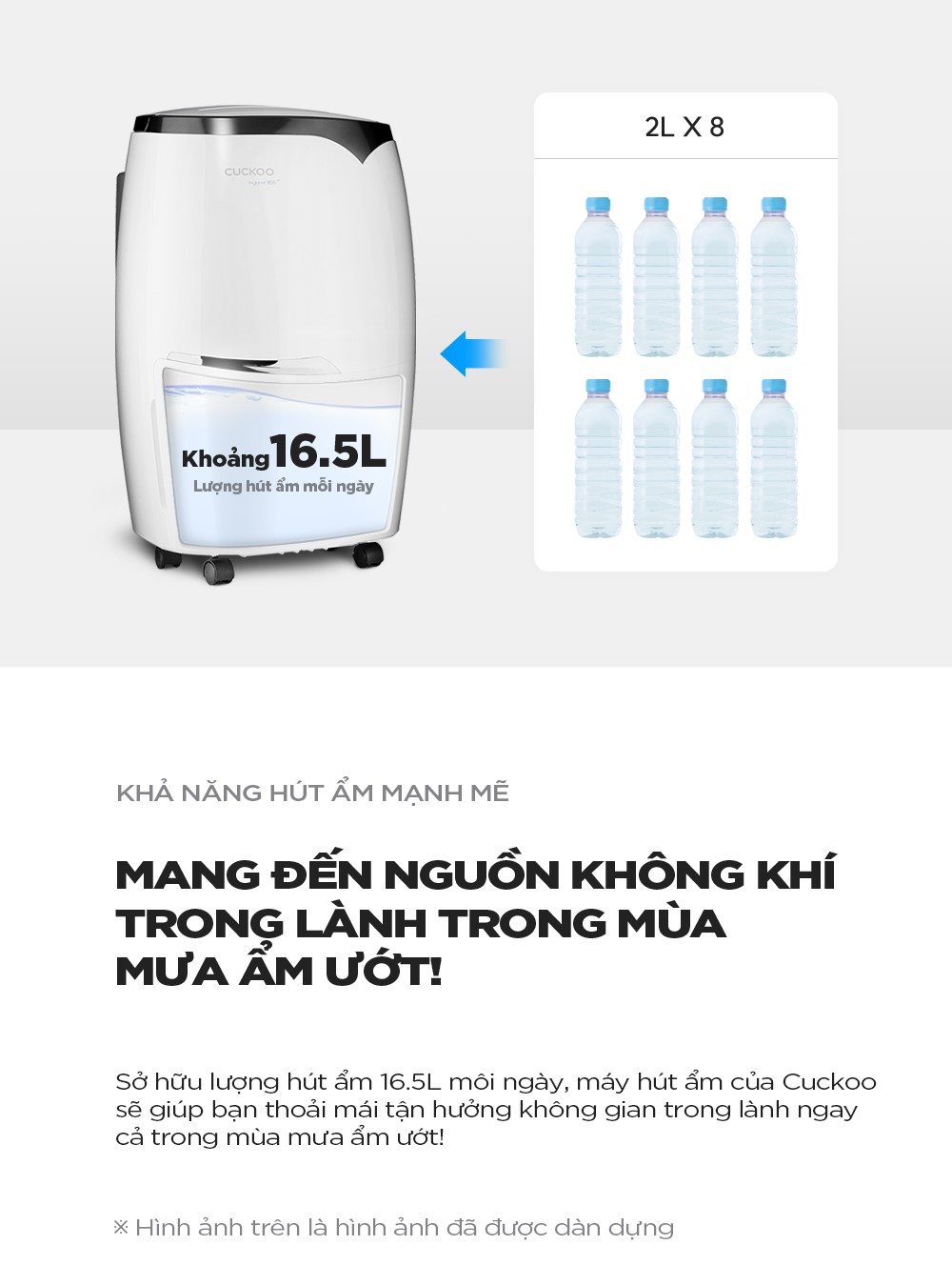 – Khả năng hút ẩm mạnh mẽ, mang đến nguồn không khí trong lành trong mùa mưa ẩm ướt