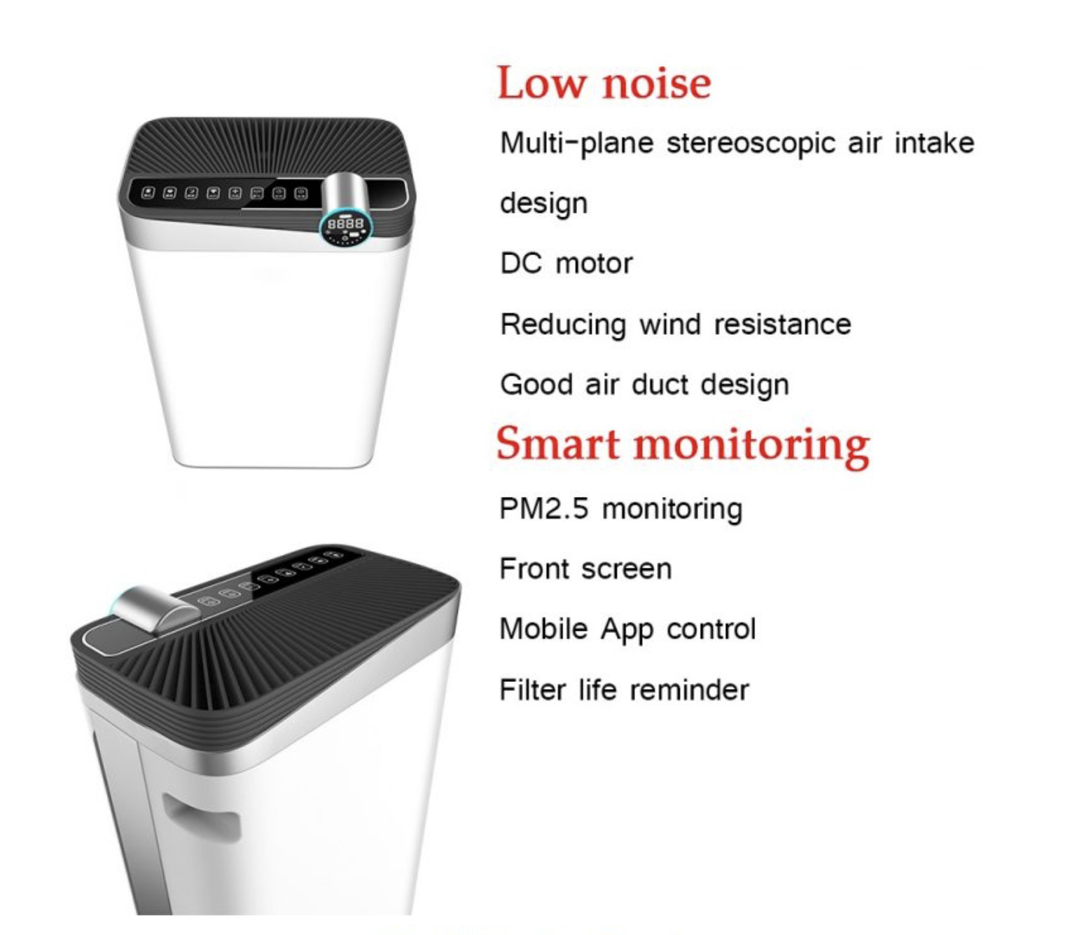 - Tạo ẩm Kiện hàng bao gồm Hệ thống nút + Điều khiển từ xa Các lợi thế của máy lọc không khí: 1.Thiết kế lọc không khí + ion hóa (2 trong 1) 2.Chất lượng: Màng lọc HEPA tạo ra chất lượng không khí hàng đầu 3.Hiệu quả: Động cơ AC cao cấp, 8 tốc độ, Yên tĩnh, Tiết kiệm năng lượng. 4.Độ yên tĩnh: 16dB~55dB, Không ảnh hưởng đến giấc ngủ của bạn 5.Cảm biến chất lượng không khí: Từ SHINYEI KAISHA. 6.An toàn: Chức năng khóa trẻ em 7.Kiểm định CE,CB,CQC,3C,Rohs,ERP,SGSCác màng lọc: Màng lọc Aluminum: Lọc sạch các hạt bụi có trọng lượng lớn, có thể làm sạch Màng lọc lớp phủ chất xúc tác lạnh : Xúc tác formaldehyde, benzene, TVOC Màng lọc kích hoạt cacbon hình tổ ong: Rapid adsorption of odor, decomposition of formaldehyde, benzene, ammonia, second-hand smoke. Hấp thụ nhanh và mạnh mùi, formaldehyd, benzen, amoniac, khói Màng lọc khử trùng: Loại bỏ các hạt bụi bay trong không khí, vi sinh vật Màng lọc HEPA chất lượng cao: Loại bỏ nấm mốc, bụi, chất gây dị ứng và vi khuẩn. Tia Sáng cực tím: Nhanh chóng diệt virut và vi khuẩn. Màng lọc ion âm: Cải thiện chất lượng không khí, sức khỏe con người Chức năng tạo ẩm: Máy có chức năng tạo ẩm, trong điều kiện thời tiết khô có thể bật chức năng tạo ẩm Các chức năng tạo ẩm:
