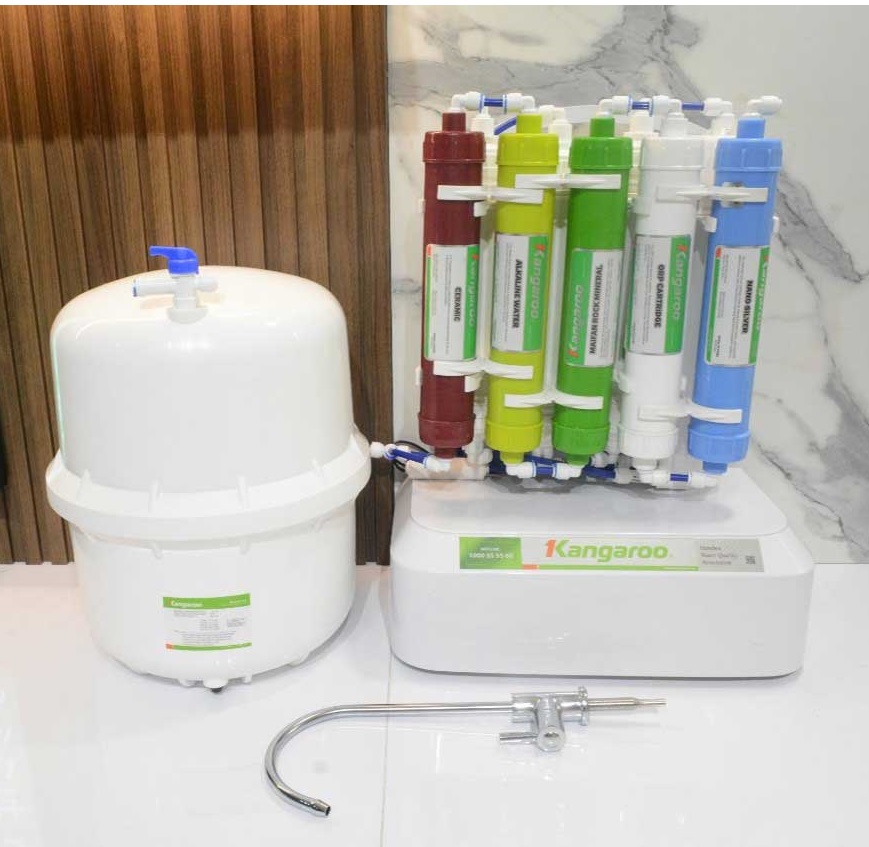 Máy lọc nước RO Kangaroo KGRP88 có 9 cấp lọc mạnh mẽ, diệt khuẩn đến 99,99%, tạo nước bổ sung vi khoáng chất cần thiết, cân bằng pH cho cơ thể, có độ điện giải thấp, tái tạo năng lượng nhanh, loại bỏ tác nhân gây lão hóa cho cơ thể. Đảm bảo nguồn nước sạch khỏe cho cả gia đình: