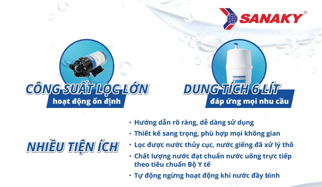 Máy lọc nước RO Sanaky VH-6210VD3 Đầy đủ tính năng. Mang lại sự tiện dụng cho ngôi nhà bạn
