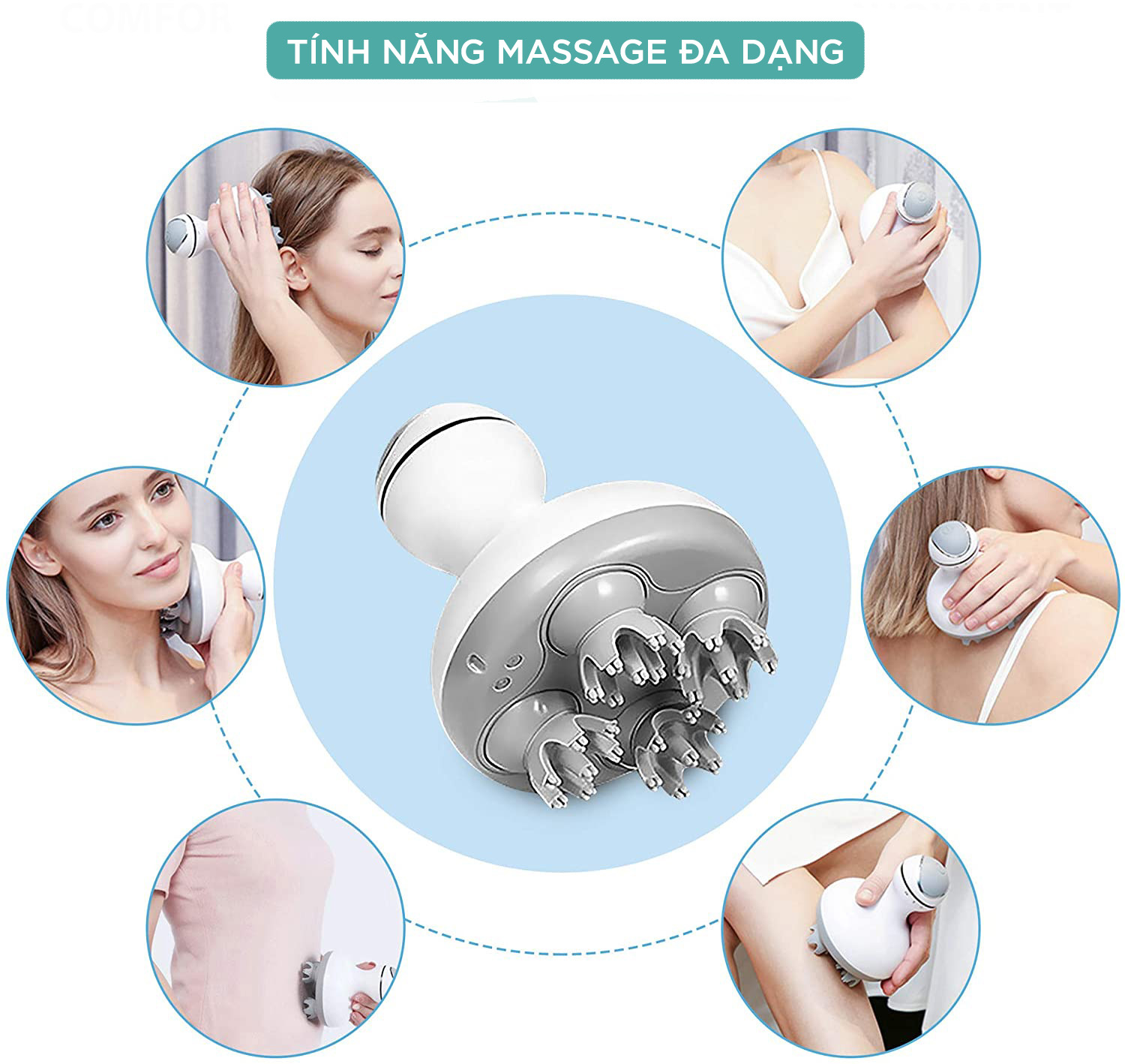 Massage cầm tay với thiết kế 8 bi xoay độc đáo mô phỏng các thao tác của nghệ nhân massage Tùy chỉnh cường độ Thiết kế cầm tay dễ dàng và thoải mái Sử dụng