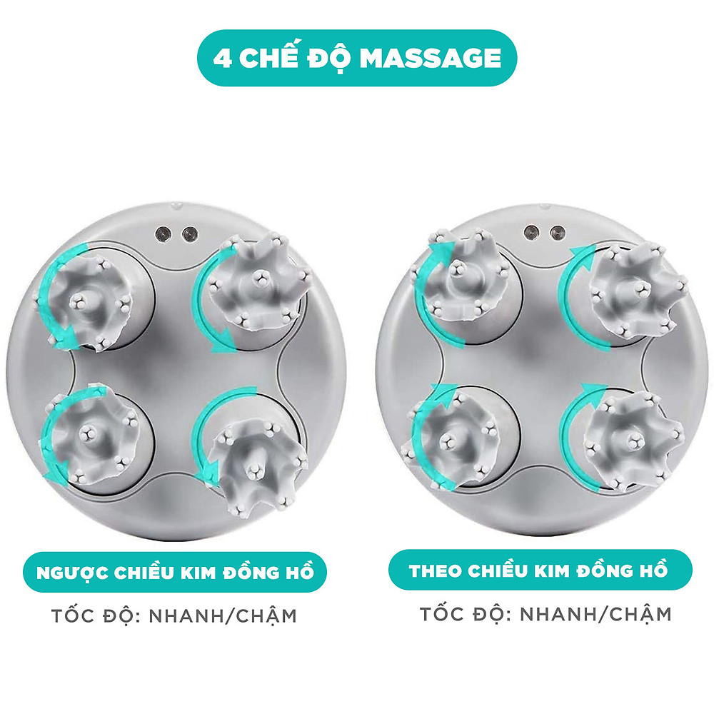 CHỐNG NƯỚC, 4 CHẾ ĐỘ: Máy có thể massage khô và ướt, máy chống thấm nước theo tiêu chuẩn IPX7, bạn có thể tận hưởng mát-xa da đầu, mặt thoải mái trong khi tắm, hãy tận dụng 4 chế độ của máy một cách hiệu quả nhất.