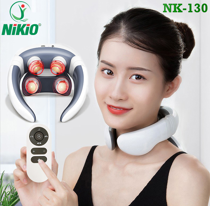 ✨Máy Massage Cổ Nikio NK-130 - Sử Dụng Xung Điện Trị Liệu Kích Thích Cơ, Nhiệt Trị Nóng Sưởi Ấm Cơ, Cải Thiện Đau Mỏi Cổ, Vai, Gáy - Máy Có 4 Điện Cực Mát Xa Chuyên Sâu Tăng Tuần Hoàn Máu, Hỗ Trợ Cải Thiện Đau Mỏi Cổ, Vai, Gáy - Điều Khiển Remote Tiện Lợi