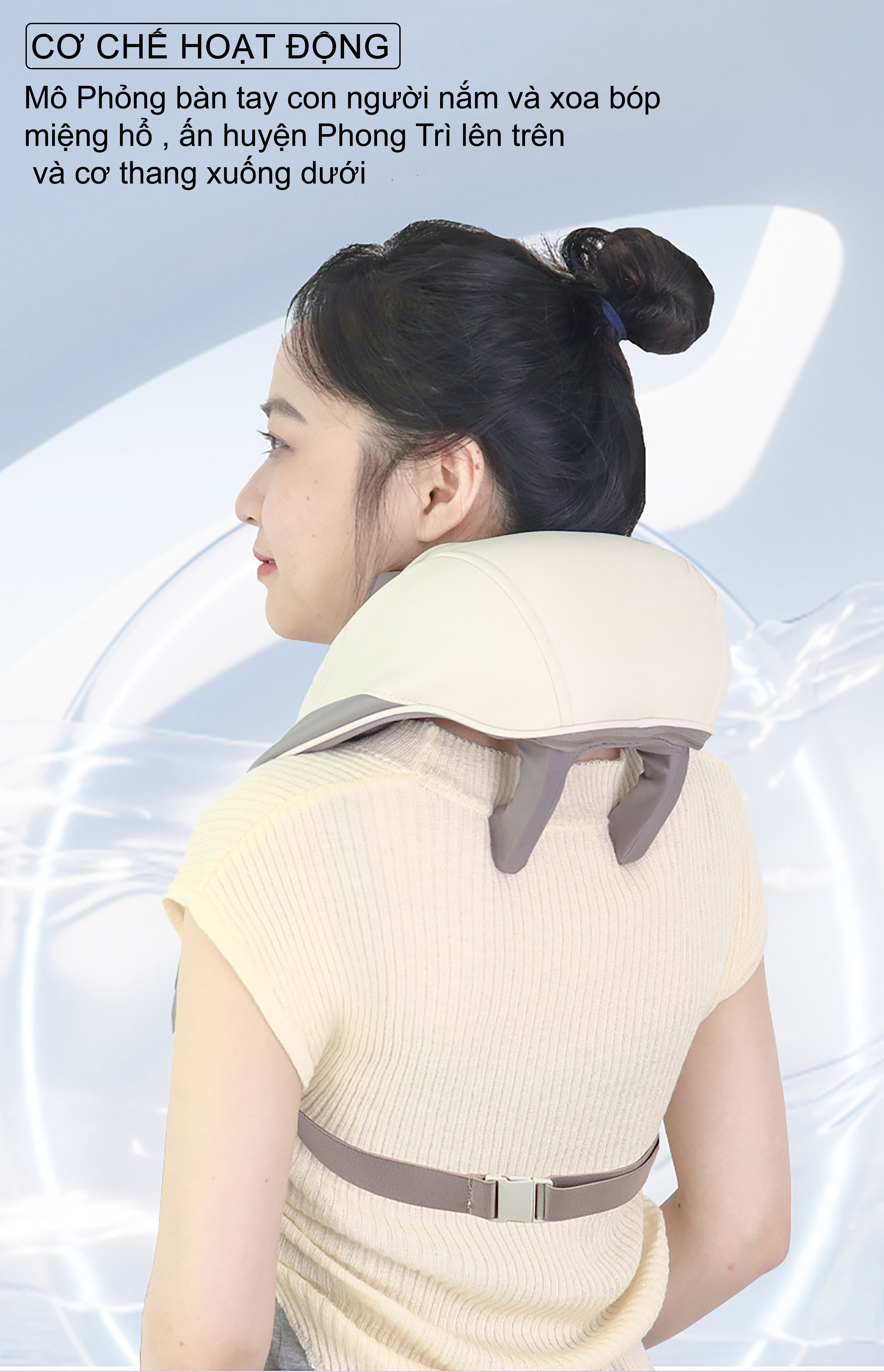 Máy Massage Lưng Cổ Vai Gáy OVIE mô phỏng như bàn tay massage shiatshu, 6 điểm tiếp xúc ôm sát vùng vai cổ giảm mỏi mệt Nhân viên văn phòng làm việc bên máy tính