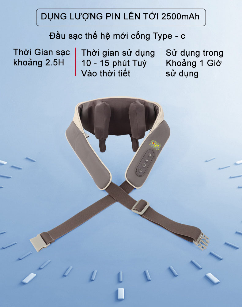 ƯU ĐIỂM NỔI BẬT:»  Thiết kế quai đeo qua vai chắc chắn và tiện nghi giúp người dùng có thể linh hoạt sử dụng tại nhiều thời điểm khác nhau trong ngày, dễ dàng vừa mát xa vừa thực hiện các công việc nh...
